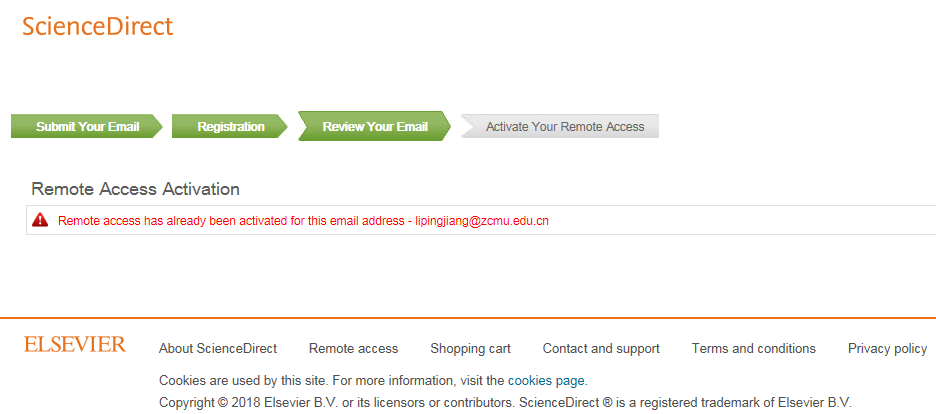 我校现已开通ScienceDirect数据库(以下简称SD)远程访问(Remote Access),读者在校网IP范围内激活个人远程访问功能并登录后,180天内可在校网范围外免费使用学校购买的SD文献资源,到期后可再次在校网内登录个人账户续期。