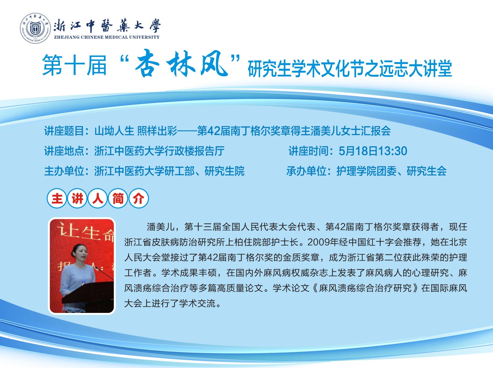 第十届“杏林风”研究生学术文化节之远志大讲堂:《山坳人生 照样出彩——第42届南丁格尔奖章得主潘美儿女士汇报会》预告