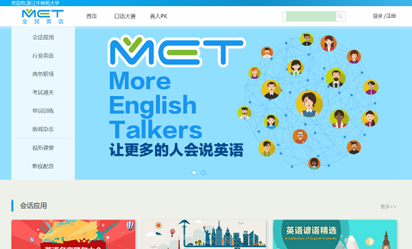 移动端访问方式:通过账号密码登录使用,帐号需在校内IP范围内注册并每6个月回到校网登录激活一次,然后在微信小程序上搜索“MET全民英语”,登陆使用