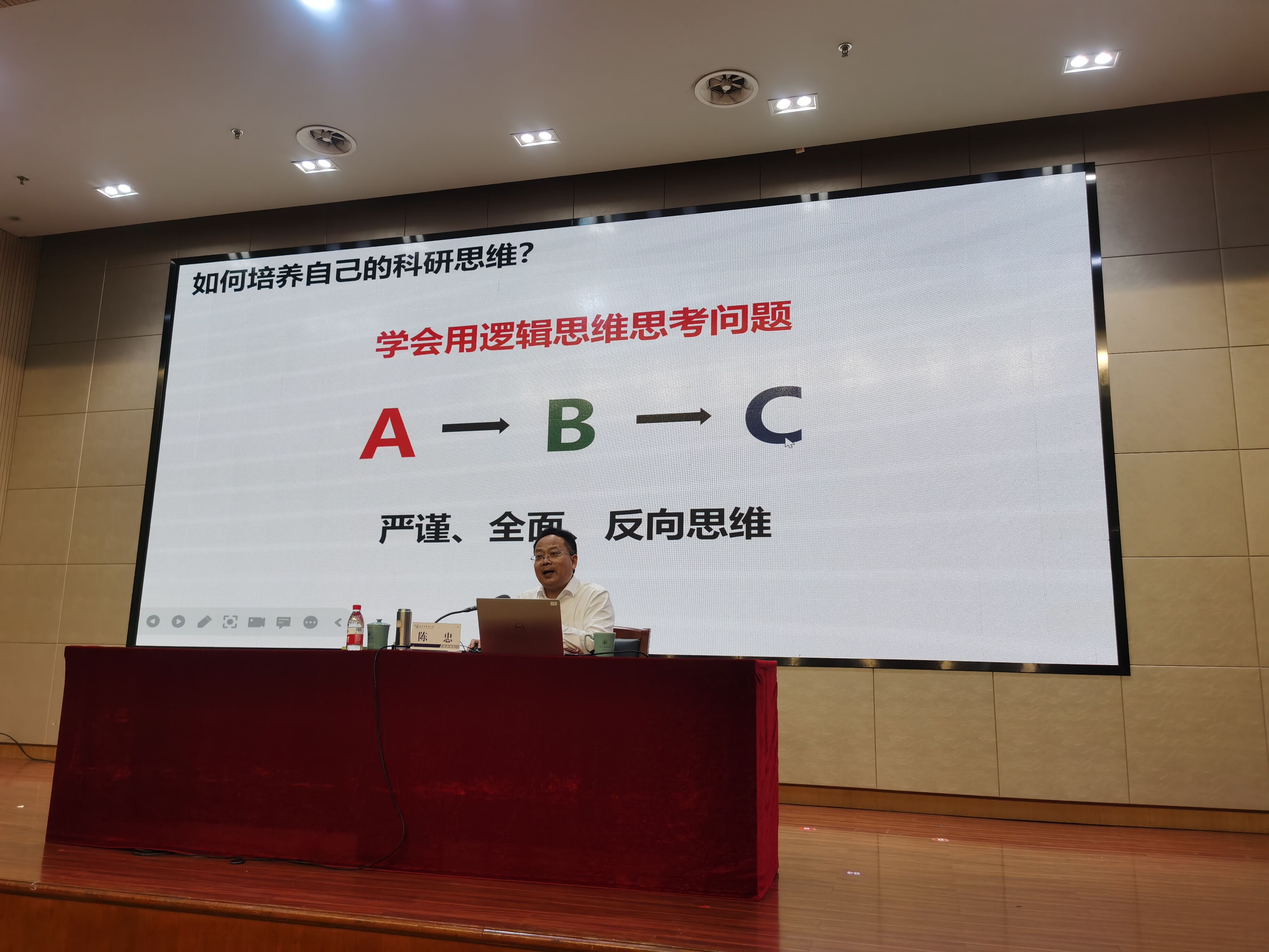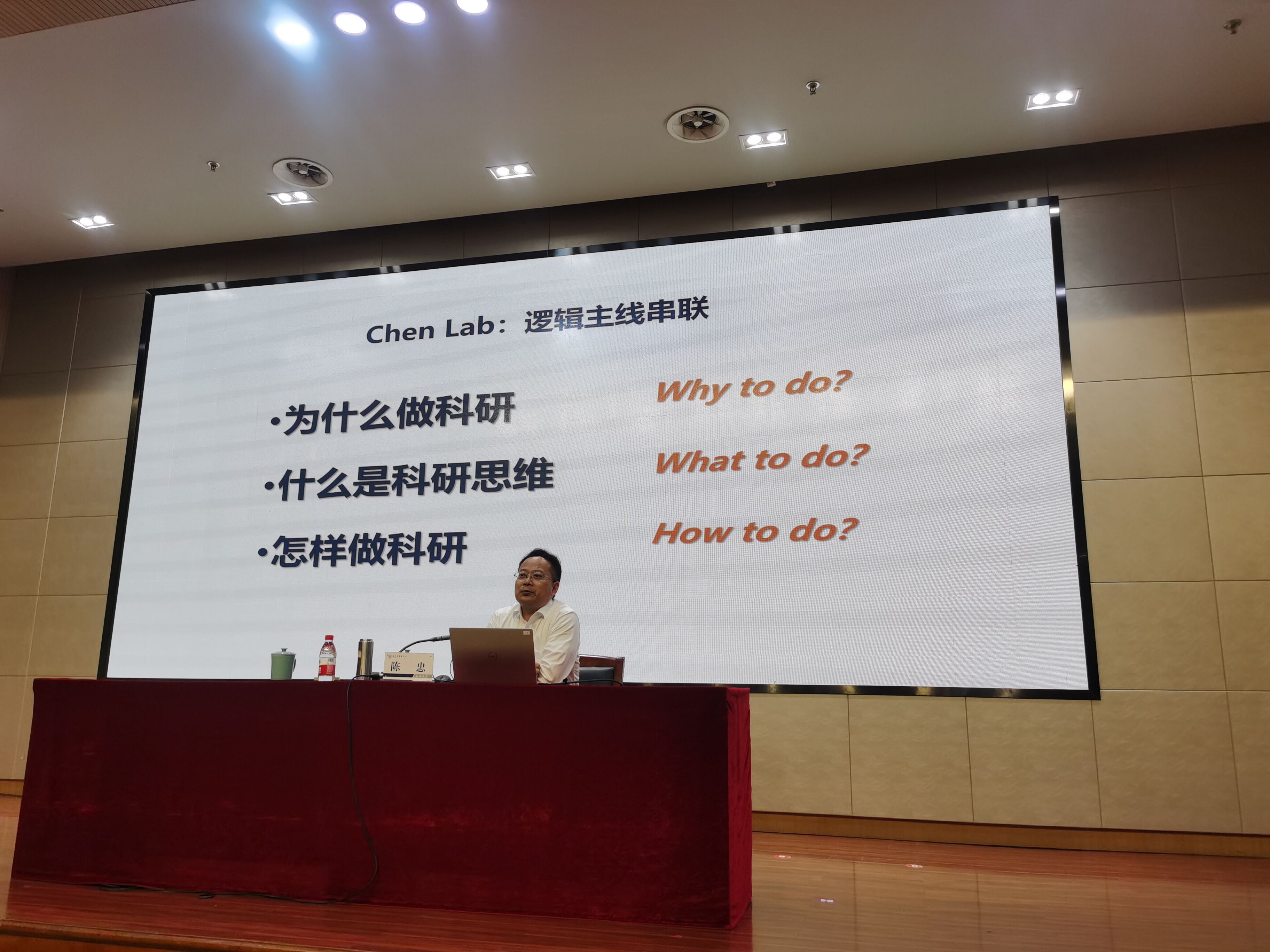 陈校长从浙江大学老校长竺可桢的“两问”作为本次讲座的切入点,提出为什么做科研、什么是科研思维、怎样做科研。陈校长就什么是科研思维、如何寻找科学问题等重点环节展开了详细介绍,以科学、详实的案例讲述了如何培养自己的科研思维、如何寻找科学的问题,并结合自身科研经历,对科研问题的发现、文献阅读、实验开展、数据分析、优秀学生应当具备的素质及对学生开展科研的建议等方面进行了深度讲解。陈校长生动的案例、广博的知识、俊逸的风采,充分激发了各位同学的好奇心、想象力和探索欲,他在科学研究、培养人才上呈现出来的责任感、使命感也深深感染了在场的所有同学。