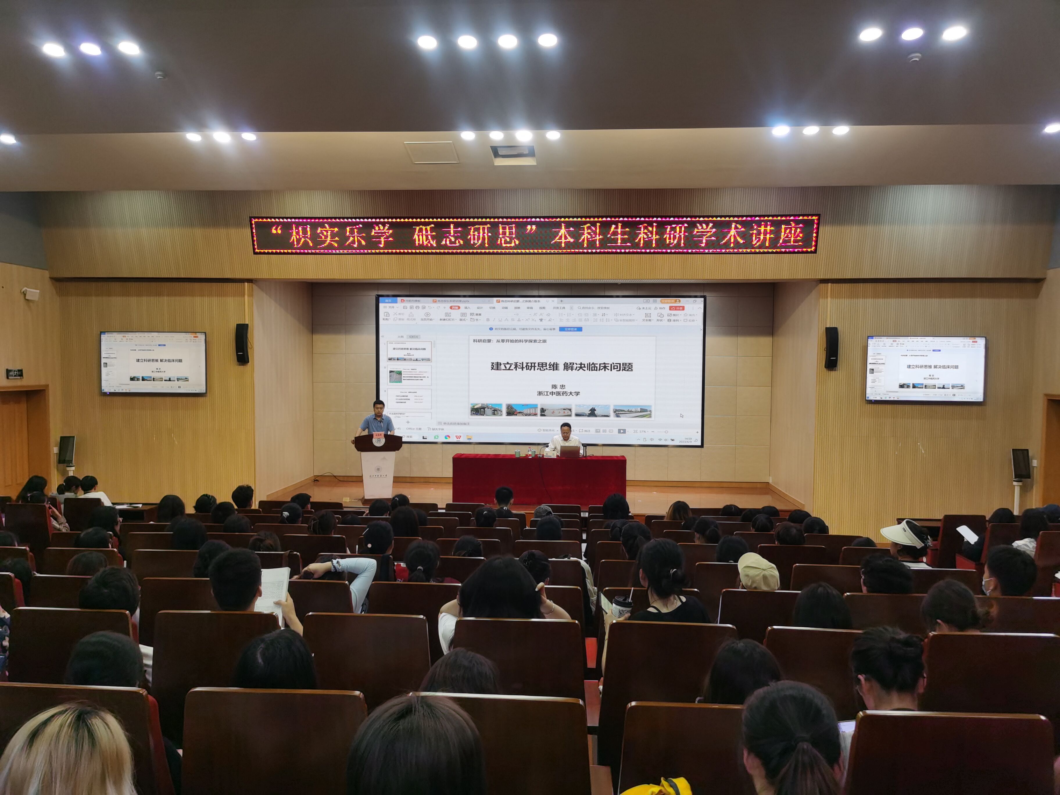 为活跃我校的学术气氛,开阔本科生科研视野,发掘学生科研兴趣,6月9日下午,校长陈忠教授应邀为我校本科生作了题为《从零开始的科学探索之旅——建立科研思维 解决临床问题》的专题讲座。讲座由学工部部长石磊峰主持。