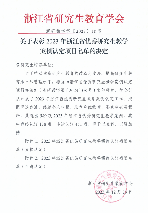 2023年浙江省优秀研究生教学案例中,beat365英国官网网站有9项案例认定为优秀案例,数量上达到新的突破!