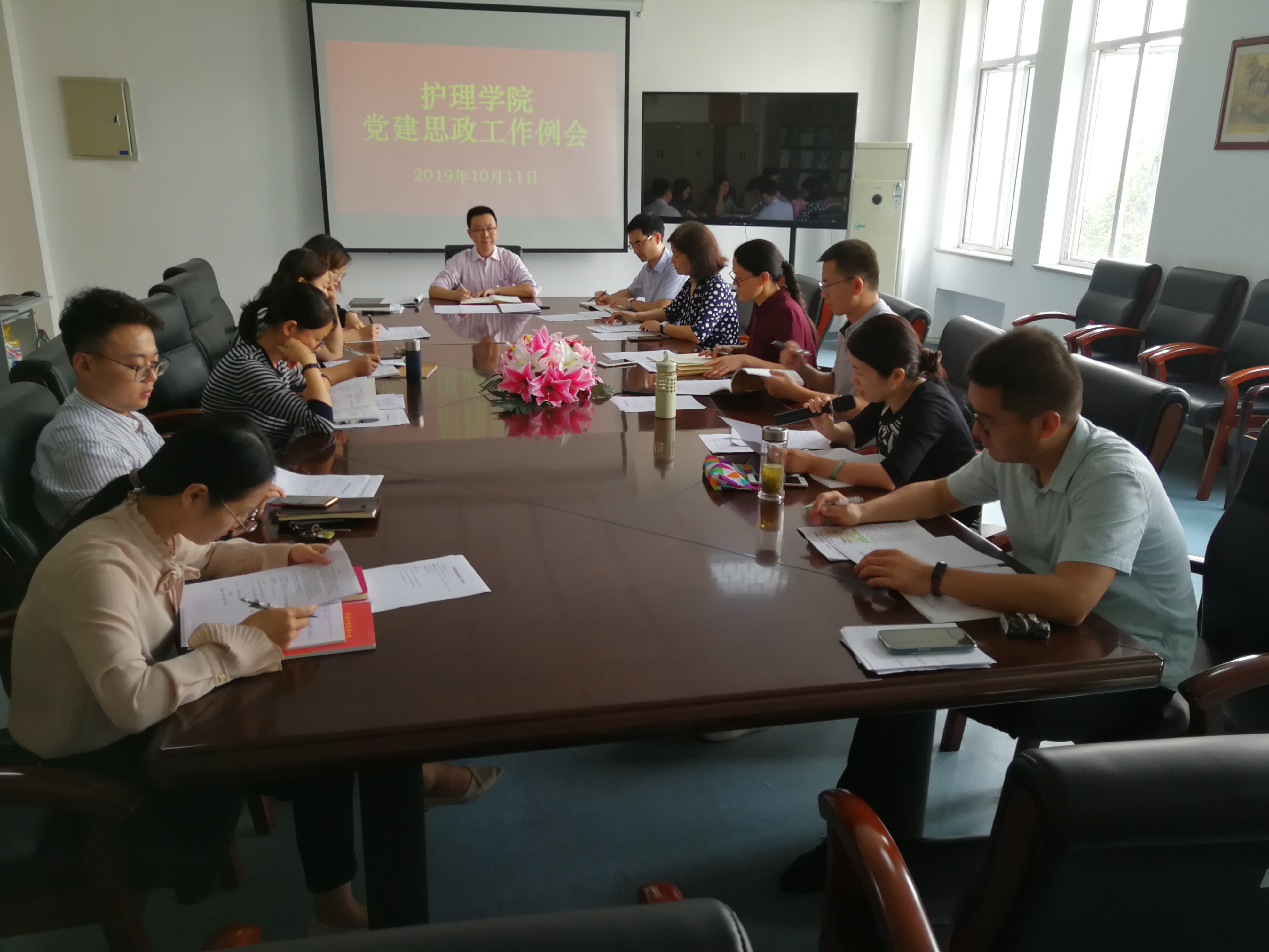 10月11日中午,护理党总支召开党建思政工作例会重点部署主题教育工作。会议由党总支书记方年根主持,学院党总支副书记林觐民、党总支委员蔡华娟、组织员金鑫俊和各党支部书记参加会议。