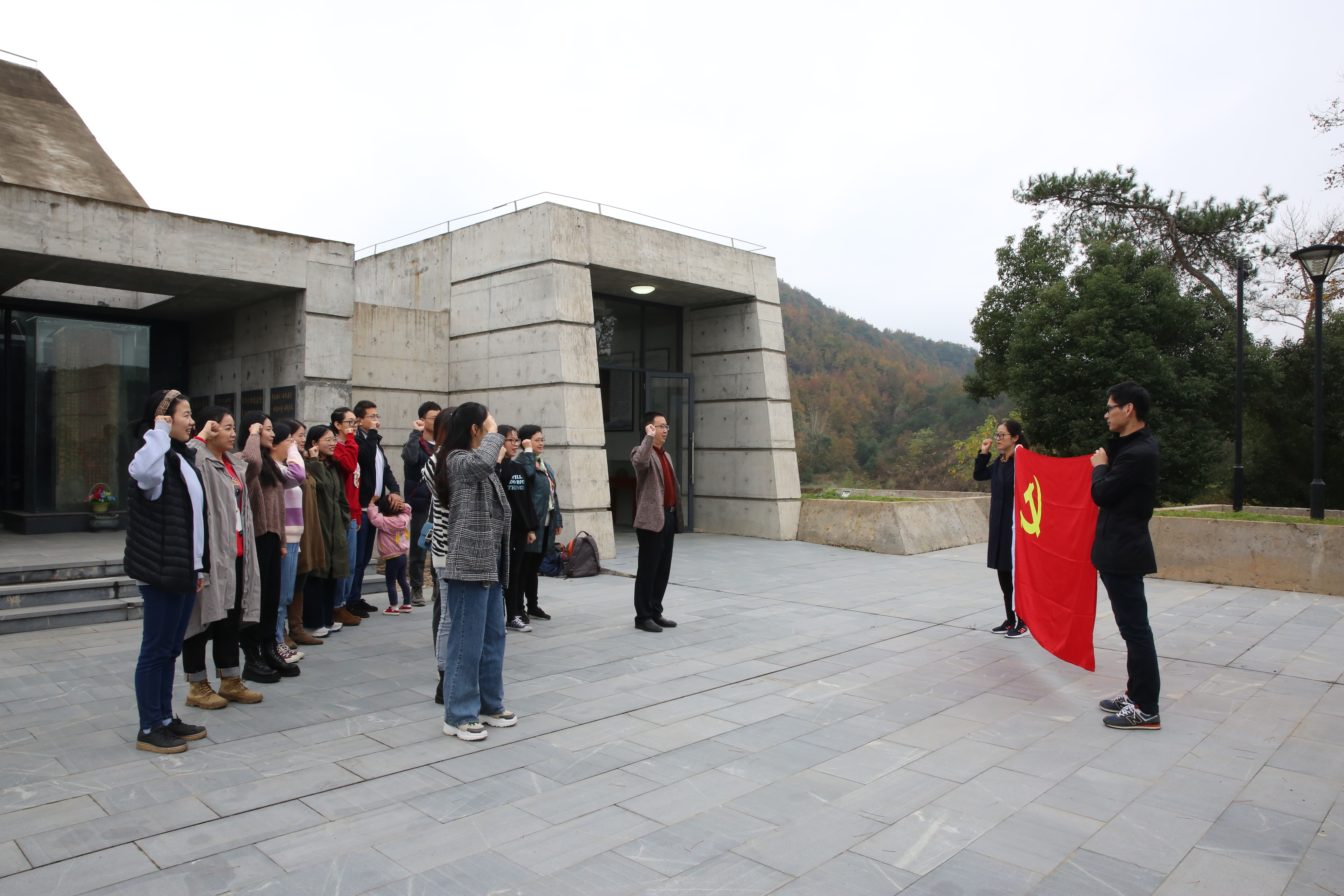 11月21日,beat365英国官网网站党总支组织20余名党员同志赴杭州市富阳区景山阻击战纪念公园开展了“铭记历史·勿忘国耻”主题党日活动。活动由学院党总支书记方年根带队。
