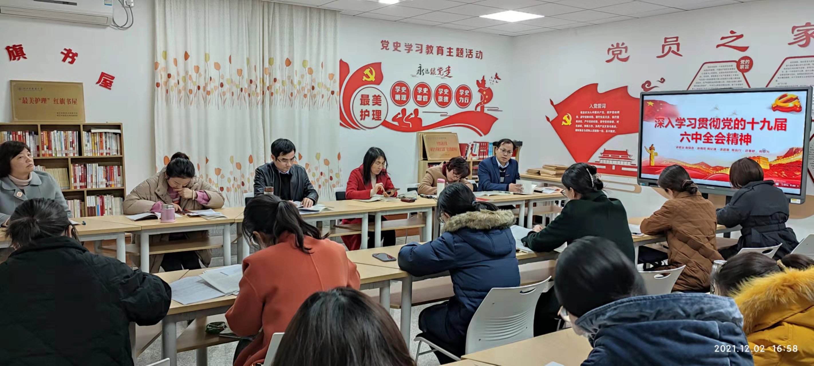 陈杭健老师分享了对中国共产党百年奋斗的十条历史经验的感悟,作为教学辅助岗位人员应该努力做好本职工作,服务好师生、服务好学院、服务好护理教育,坚持开拓创新,在不断的实践中取得更大进步。