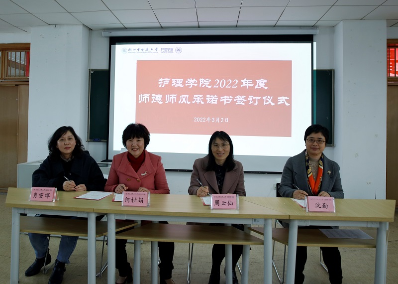 随后学院领导与教研室主任代表签署了师德教育承诺书和安全责任书。
