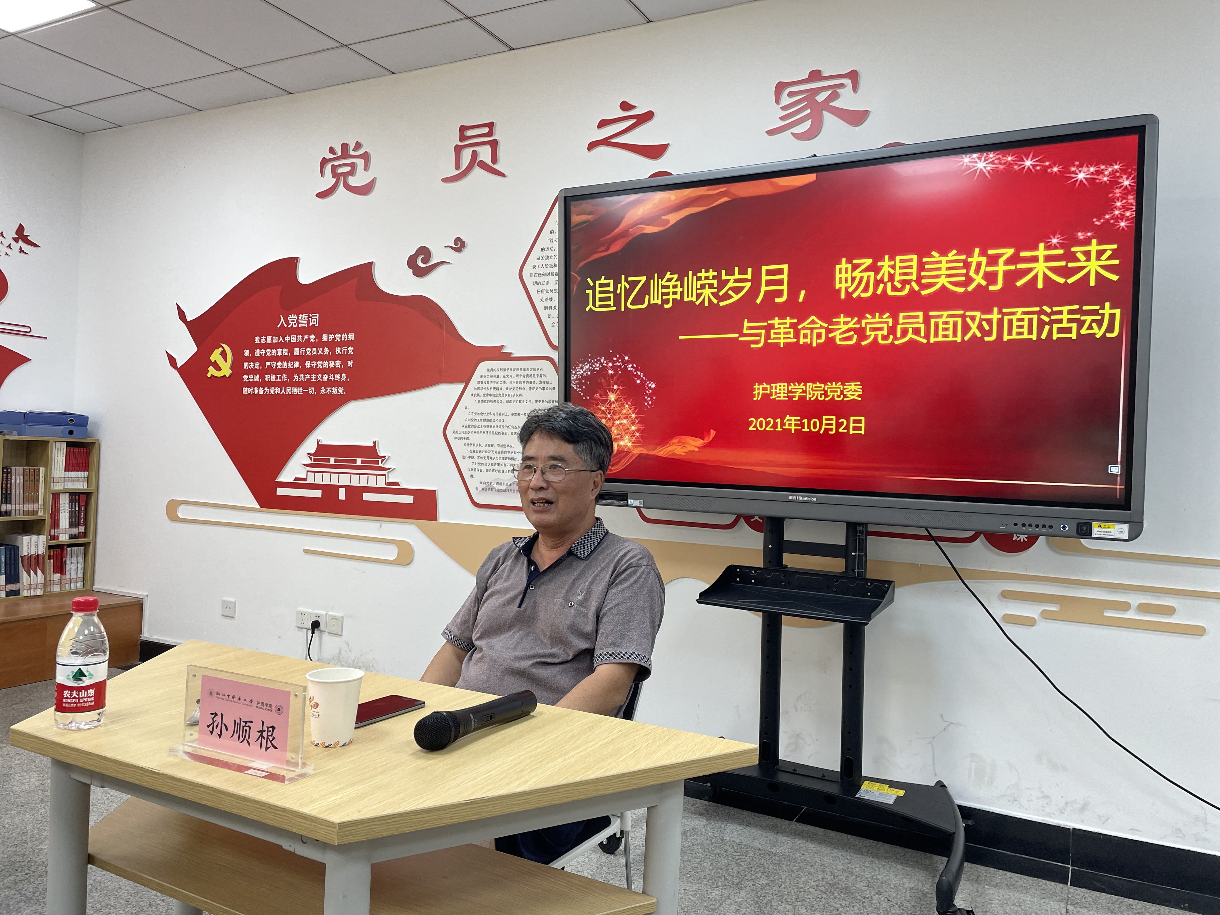 历史长河里,有这样一群人,营盘流水军旅生涯,枪林弹雨经历生死,他们的人生轨迹有浓墨重彩的红色烙印。他们所经历的是中国百年来的重大变革和中华民族从弱小走向复兴的真实写照,他们身上血火淬炼的红色精神,影响着一代又一代的青年。他们有一个响亮的名字——革命老兵。本次活动特别邀请我校离退休老党员、空军某师老兵孙顺根老师。