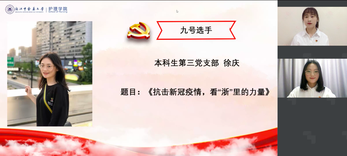选手们围绕“决胜小康,奋斗有我;共享小康,幸福有我”主题,聚焦决胜高水平全面建成小康社会中的“浙”里成就,聚焦为全面小康、疫情防控作出突出贡献的“浙”里力量,聚焦各行各业涌现出的泪水与汗水交织、困难与奋战交锋、收获与喜悦交融的“浙”里故事,为大家献上了一场精彩的比赛。最终,来自本科生第四党支部的王璐荣获一等奖,其余2位选手获二等奖,3位选手获三等奖,6位选手获优胜奖。