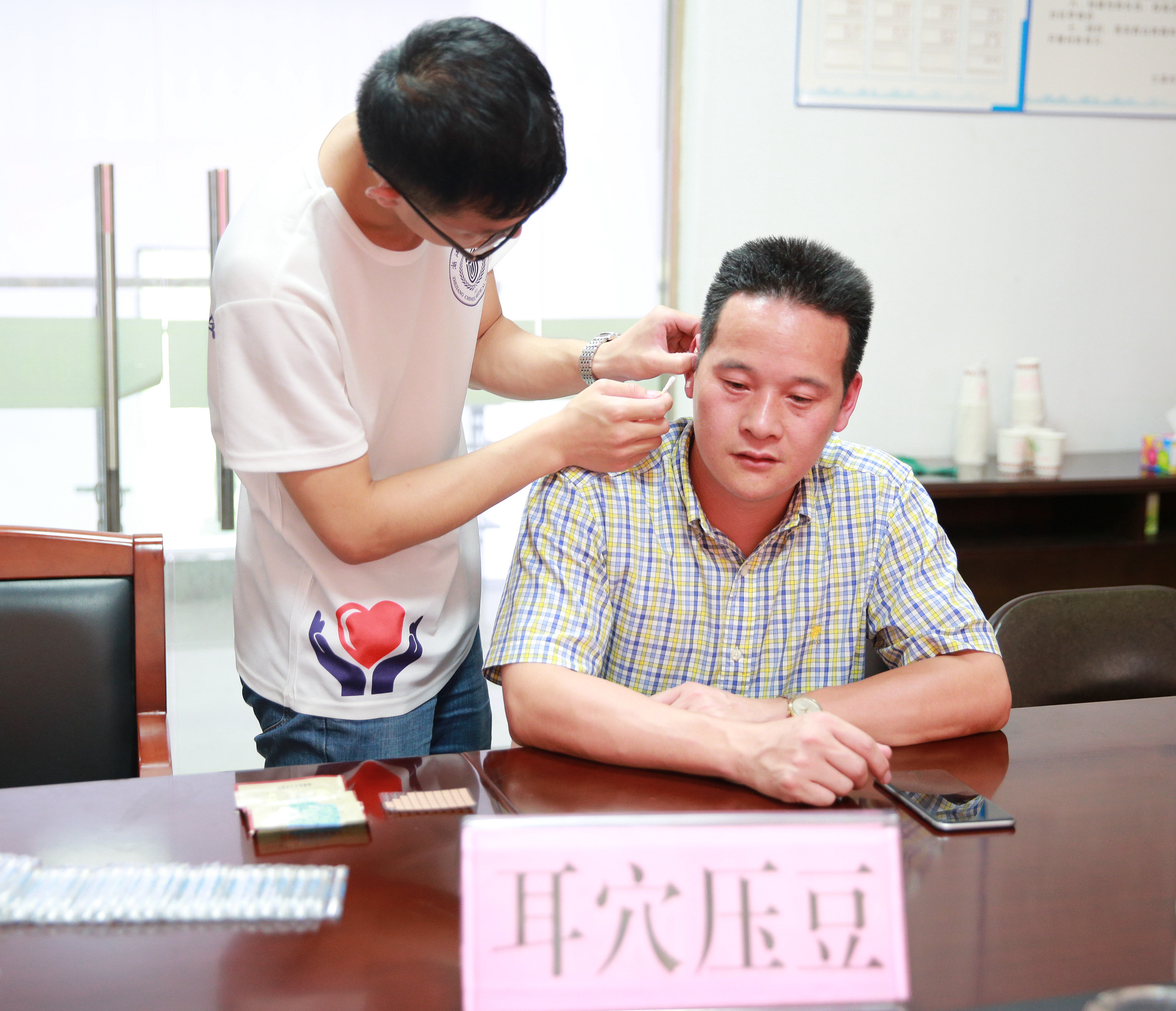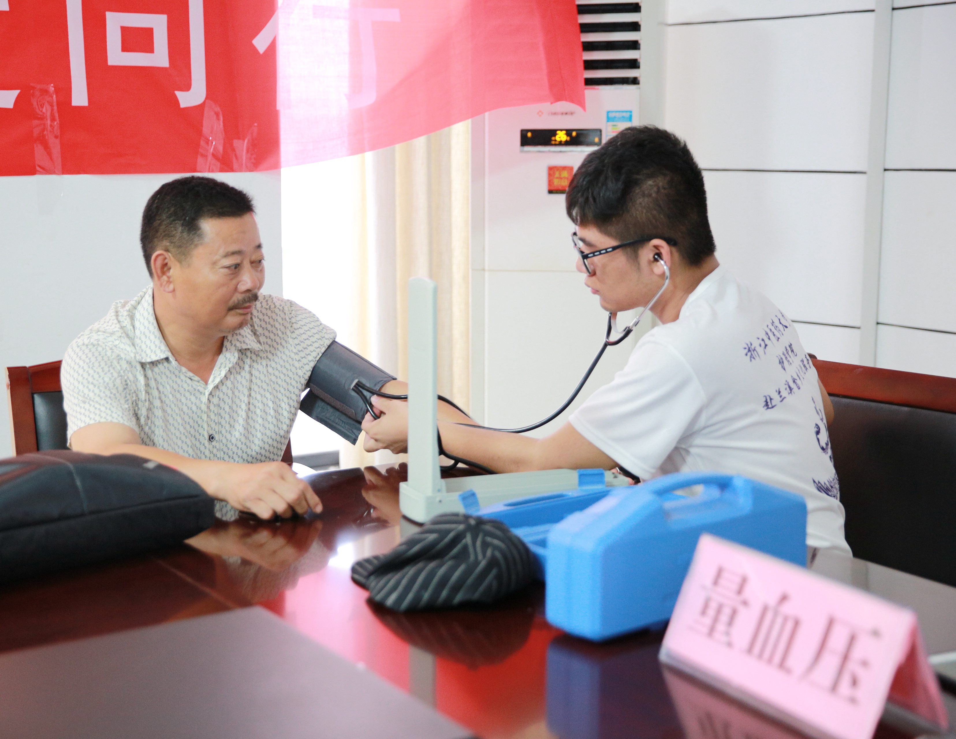 当天下午,医疗服务活动在乡政府正式开始。实践团成员们在忙碌中有条不紊地为乡政府工作人员和一些闻讯而来的居民进行了血压测量、耳穴压豆、推拿按摩等基础医疗服务,并不时解答大家对于自身健康、保健等方面的知识。鉴于服务对象众多,实践团开展的医疗服务侧重点也不尽相同。针对工作人员,偏向于按摩、艾灸,放松肩颈腰部;面对乡镇居民,则偏爱血压测量、耳穴压豆等养生保健的服务项目。在服务过程中实践团成员也发放了调查问卷,通过耐心引导和解释,获取相应的的调研信息。傍晚时分,第一站的医疗服务在村民的热情中圆满落下帷幕,本次服务共计百余人次,此间村民们纷纷向队员抛出“橄榄枝”,希望接下来几天都能举办此类服务项目。