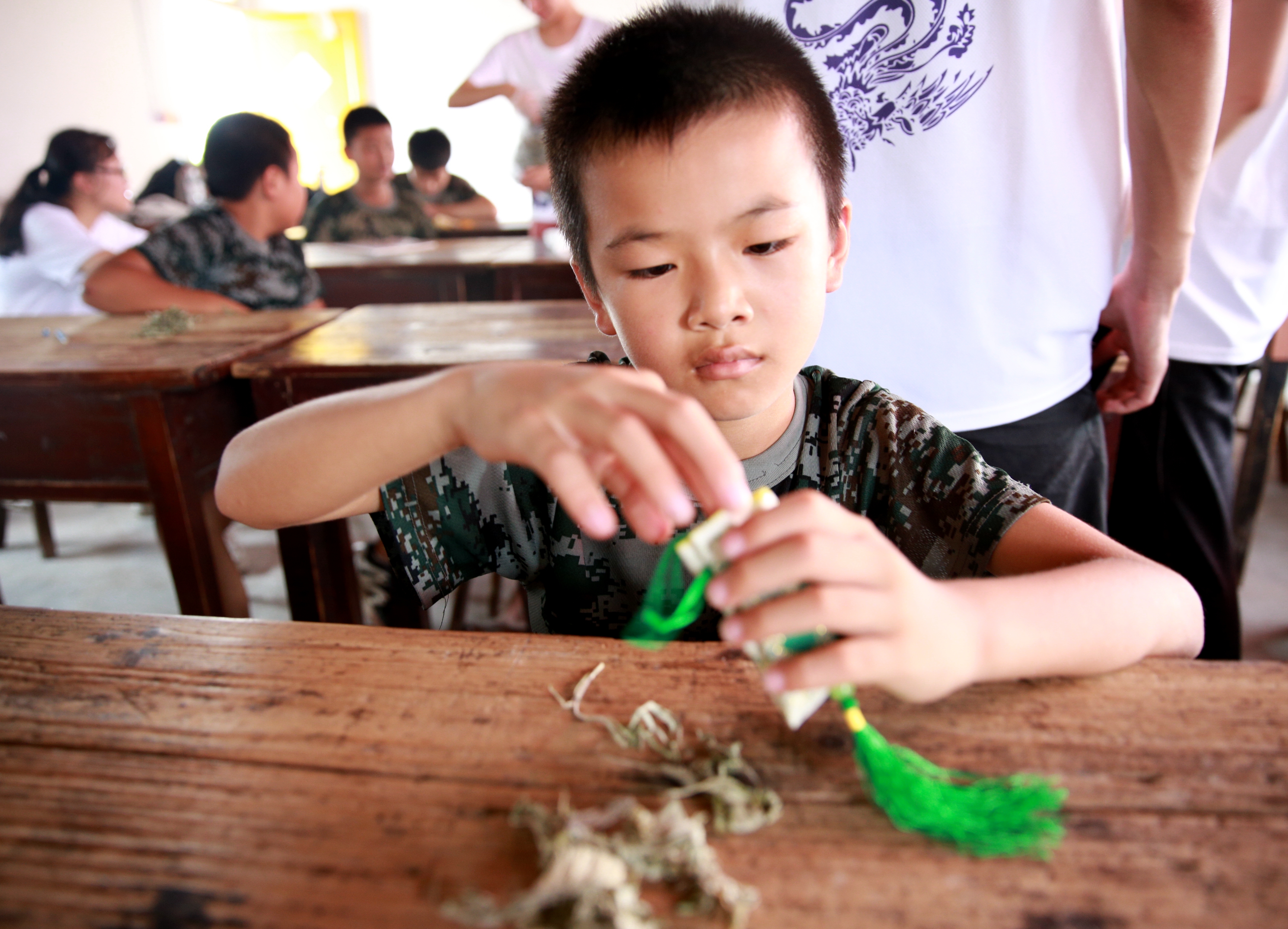 畲族儿郎,欣欣向阳。顶着夏日骄阳,实践团成员马不停蹄来到畲族风情园示教室,为参加夏令营集训的畲族儿郎们上了一堂生动别样的“操作”课。孩子是新生的幼苗,自我防护对他们来说至关重要。为此,本次课堂特设七步洗手法、急救包扎、识草药包香囊等内容。作为具有中医特色的护理学专业,推拿、穴位敷贴等中医护理操作技术也是此次活动的重点教学内容。经过小老师们的耐心教学,小朋友们纷纷亲身实践,止血包扎等操作从懵懂的意识逐渐成为一项项本领。风华正茂,意气风发,正如畲族骄傲少年。活动在学员们对小老师一个个深情的拥抱中圆满结束。