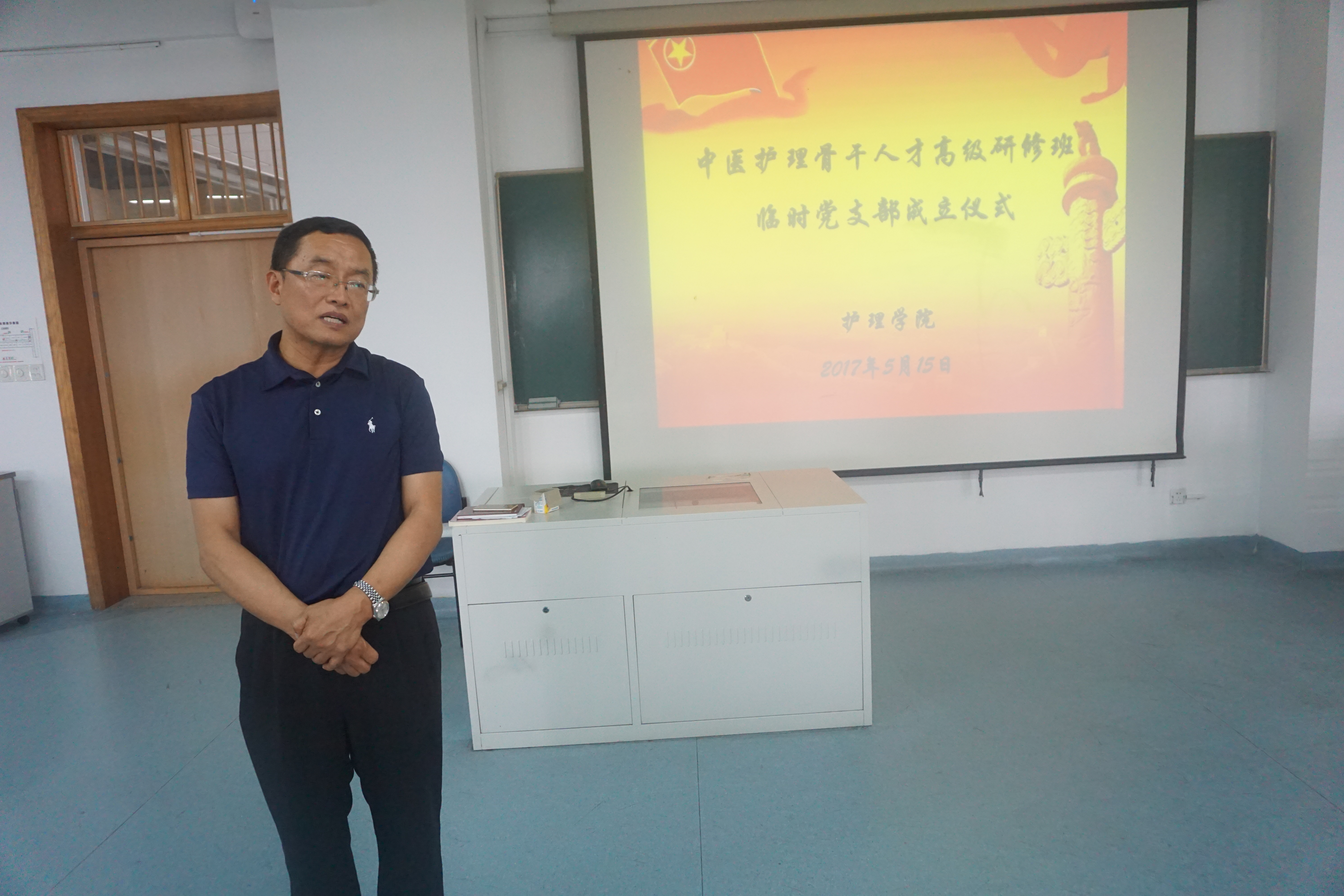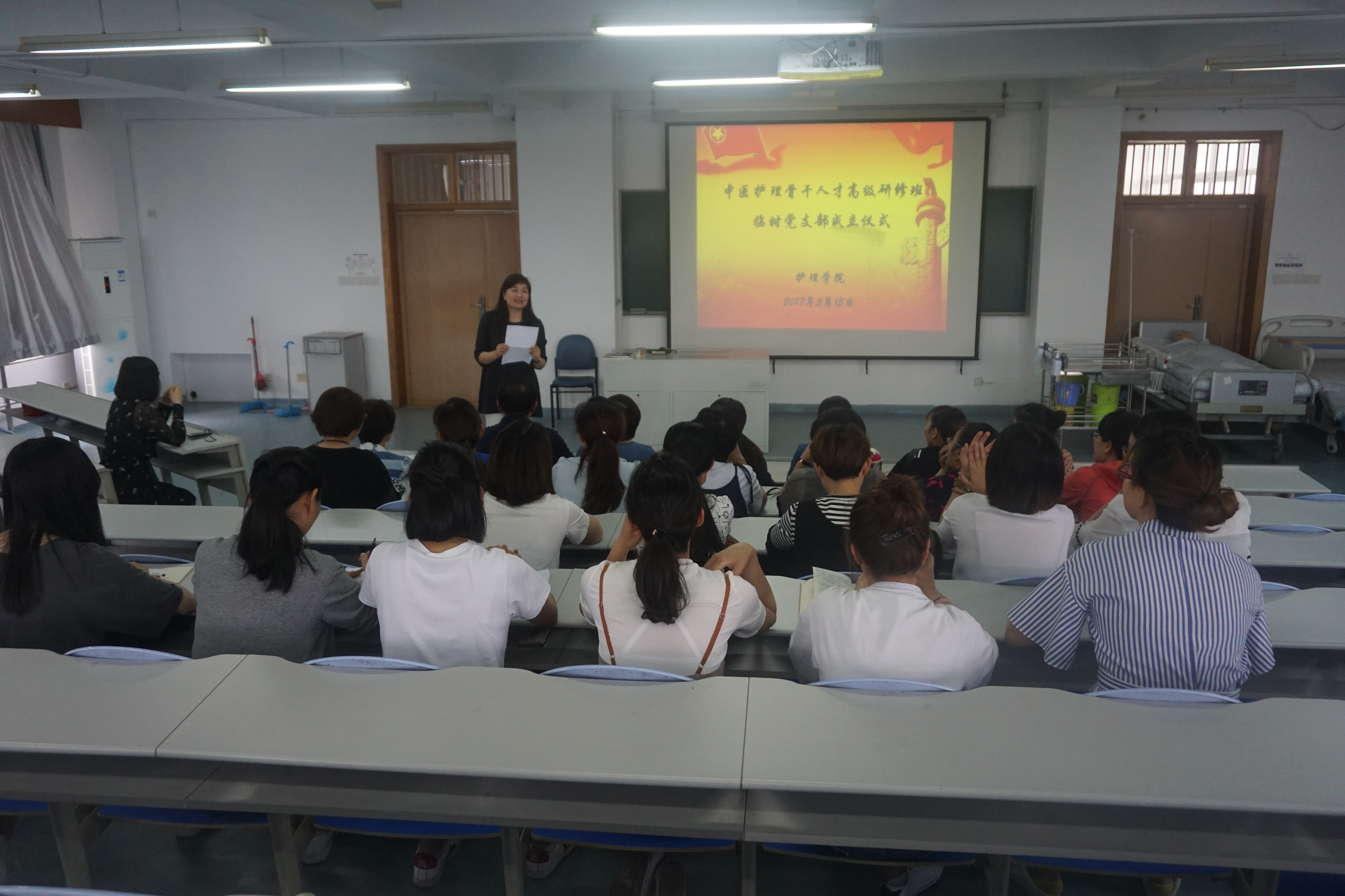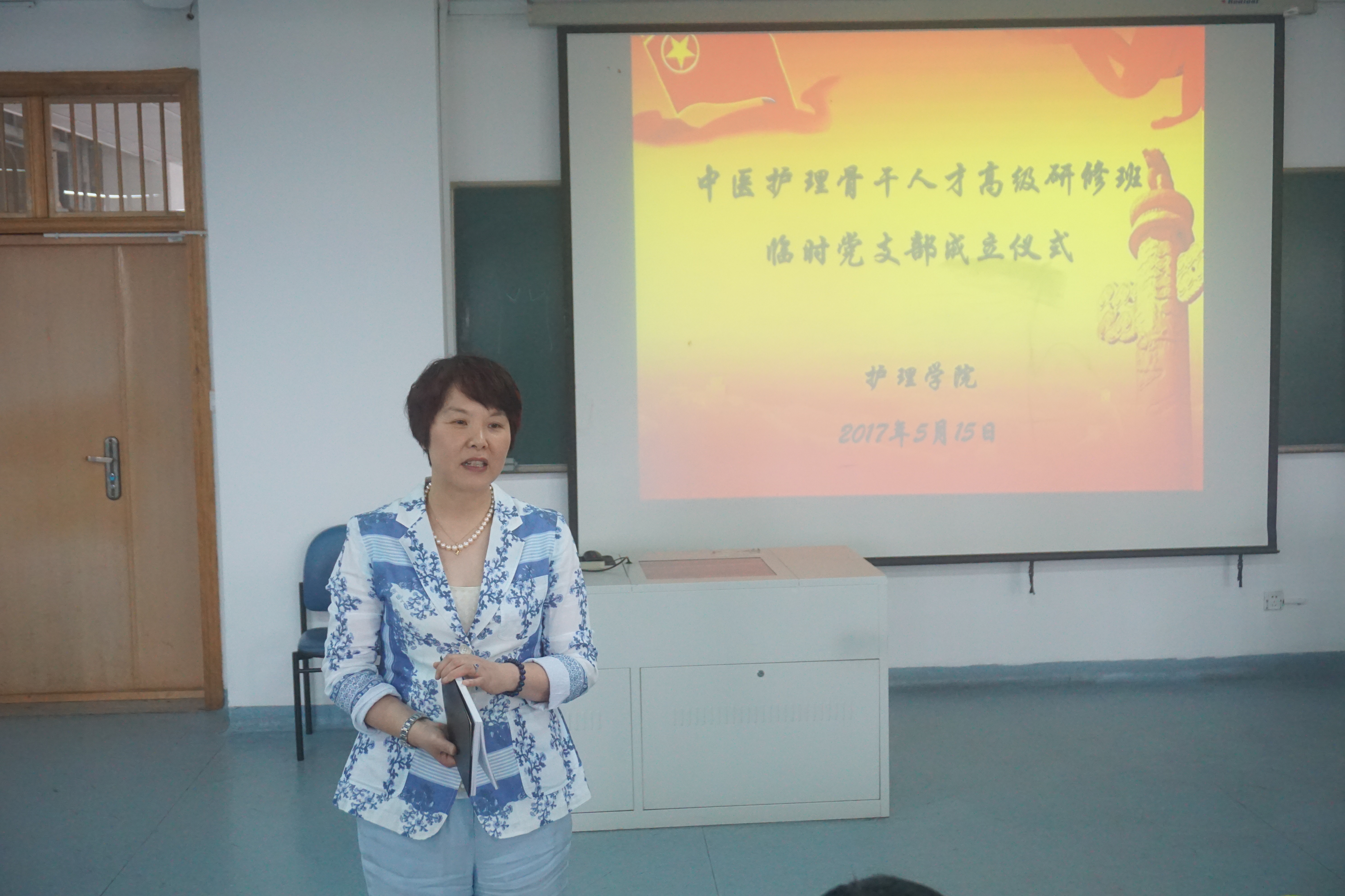 为了加强对浙江省中医护理骨干人才高级研修班全体党员教育和管理,做好该研修班学员思想政治工作,监督学员履行党员义务,遵守学校、学院的各项管理制度,保障学习、工作任务的完成,经校党委组织部批准成立浙江省中医护理骨干人才高级研修班临时党支部,经过充分酝酿,小组推荐,beat365英国官网网站党总支在听取党员意见基础上,研究决定任命研修班学员包云春同志为临时党支部书记,吴丹同志为组织委员,张金晶同志为宣传委员。5月15日,临时党支部成立及任命仪式在beat365英国官网网站21420教室举行,beat365英国官网网站何桂娟院长,党总支刘师少副书记,学办主任、组织员孙文菁、班主任蔡华娟及研修班全体党员参加了仪式。