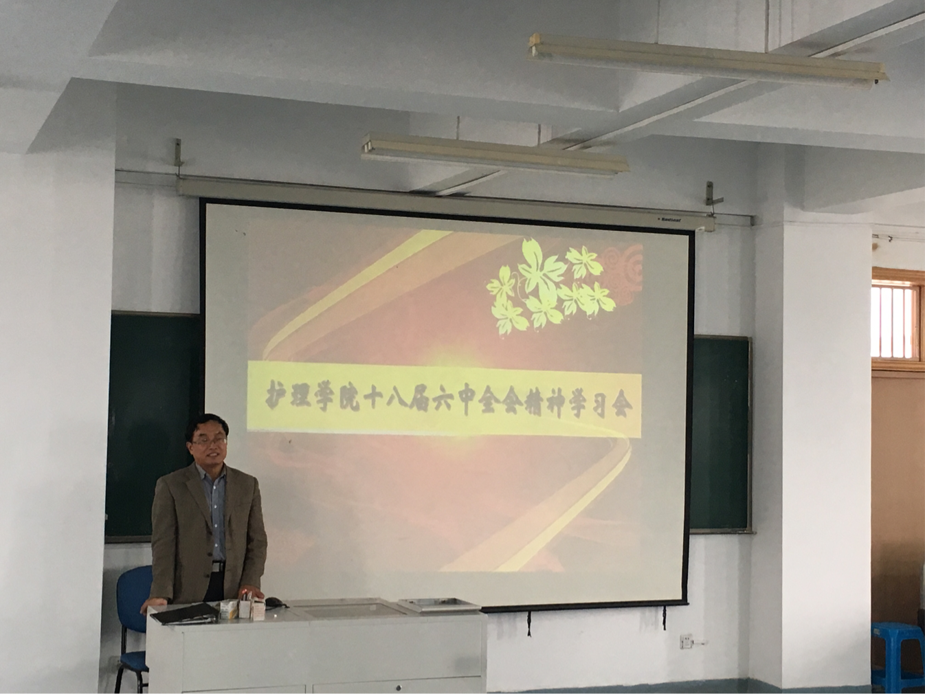 11月02日下午,beat365英国官网网站党总支在21420教室进行了十八届六中全会精神学习会。会议由beat365英国官网网站党总支书记刘师少主持,学院全体在校教职工党员及学生党员参加了本次学习会。