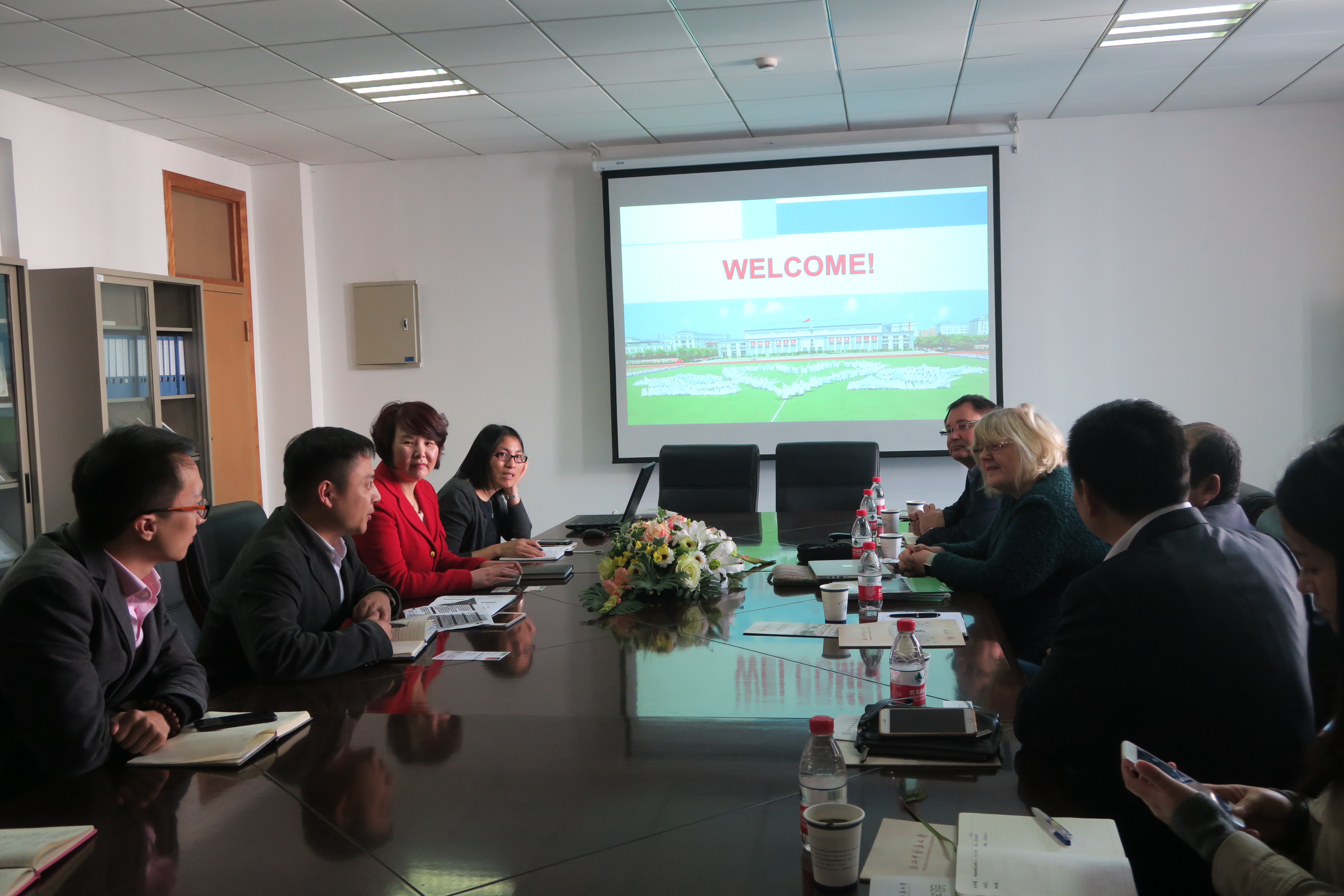 2016年11月3日上午,Annie Barr International Limited(安妮·巴尔健康集团),以下简称ABI,创始人及CEO Annie女士及中国医院协会疾病与健康管理委员会外事部主任杨舜一行7人来beat365英国官网网站就“陪医伴伴”国际医疗健康管理教育中心具体合作运作方式进行深层次洽谈,我校国际合作与交流处蒋剑锋副处长和学院全体党政领导班子成员参加了会谈。会上何桂娟院长介绍了学院教学、科研等学院总体情况;蒋剑锋副处长介绍了学校情况及我校与英国对外交流情况;Annie女士介绍了ABI的创办历史和理念及在各国开展培训的模式。