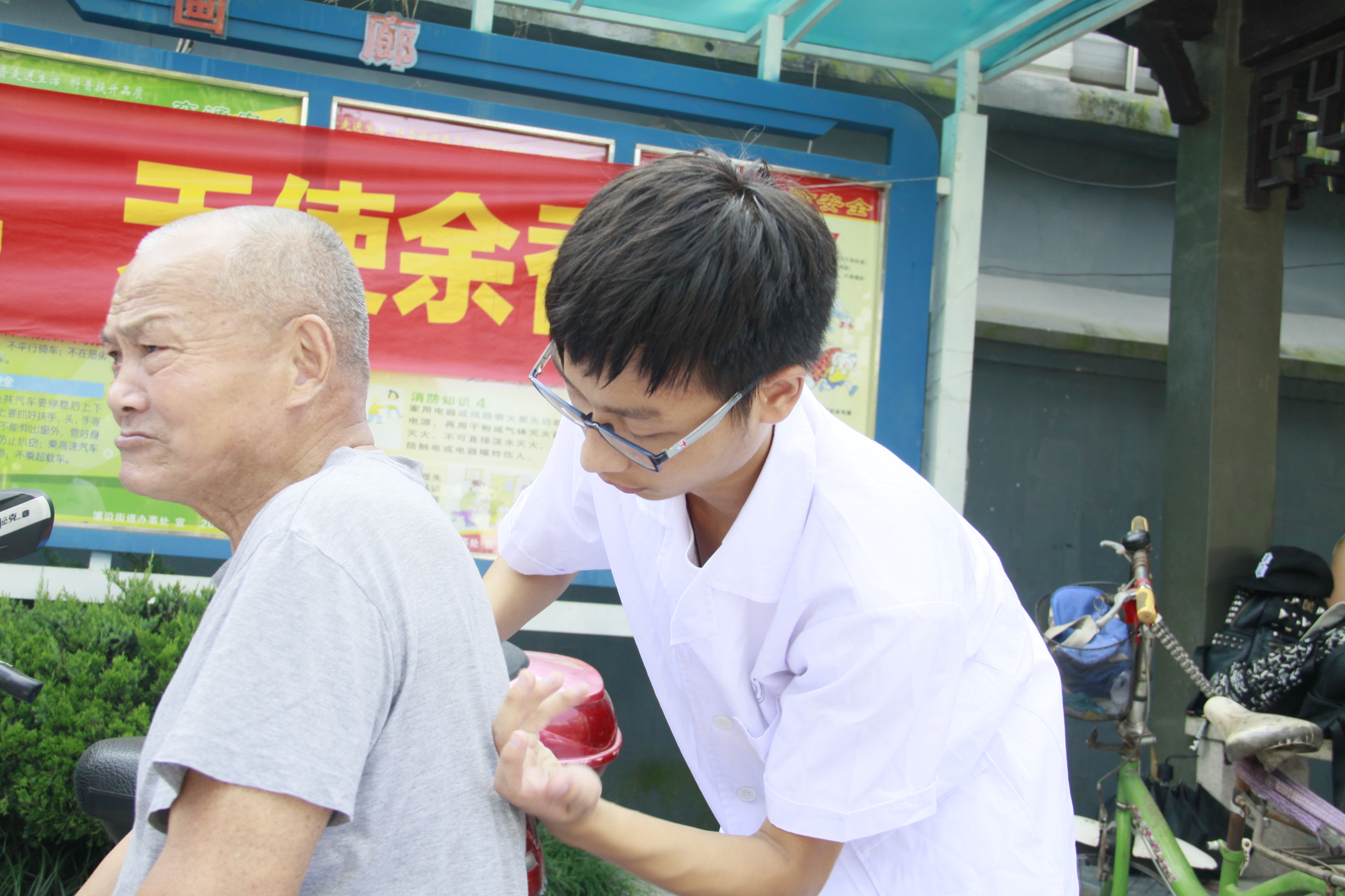 2016年7月15日,beat365英国官网网站“天使心·护梦情”赴杭州暑期社会实践队走进浦沿街道新浦社区展开了一系列医疗服务工作。不仅体现护理学子的奉献精神,中医院校的特色,更是响应G20的号召,积极践行社会主义核心价值观。