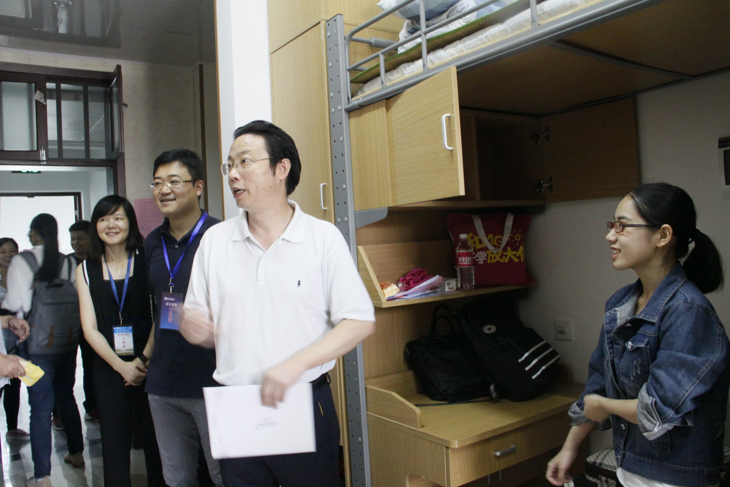 为使新生更好地适应大学生活,在大学里感受到不一样的关怀与温暖,副校长张光霁老师,校团委书记张文恺老师、学院党总支副书记董凯峰老师一行于9月11日来到了富春校区beat365英国官网网站的新生宿舍进行走访。