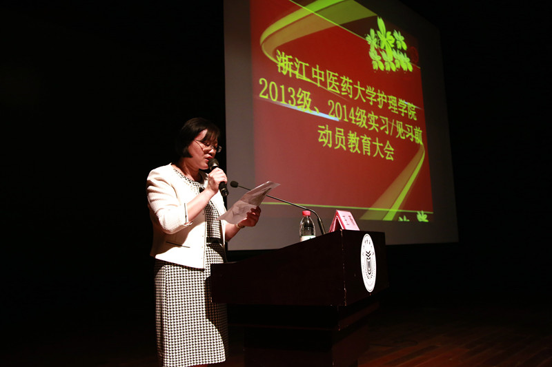 5月26日晚,beat365英国官网网站在23号楼行政报告厅开展了2013级、2014级实习/见习前动员教育大会。浙江大学医学院附属第一医院护理教育中心主任王薇老师,校友胡辛老师应邀参加本次动员大会。