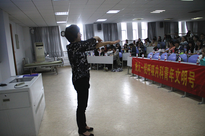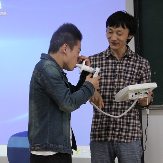 本次培训活动包括三大环节,呼吸科张医生就有关吸烟对健康的影响、如何正确戒烟、如何防止复吸等问题和大家作了分享。随后,章护士为大家讲解各种类型口罩的利弊及其选择条件等;最后,吕医生进行现场教学,带领大家一起进行呼吸锻炼操。另外,呼吸科的老师们还为现场的同学们进行了肺功能测定,检测呼吸系统疾病,以及解答有关呼吸系统的问题。本次活动采用理论讲解、实际操作和临床案例分析相结合的培训模式,活动中,同学们积极性高,踊跃地参与到各个交流环节中,受益匪浅。