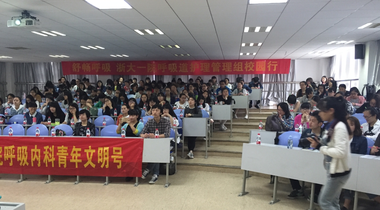 5月8日上午,beat365英国官网网站团委特邀浙江大学附属第一医院呼吸科的张泽英主治医生,章益美主管护师,吕张红主管及陆国华技师,到滨文校区21楼518教室为即将进入临床实习的大二、大三同学开展呼吸道专项技能知识培训讲座。