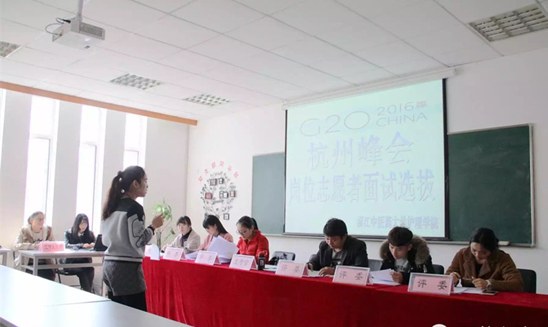 为此,学院特制定G20杭州峰会志愿者的面试方案,按照初试、复试的程序严格筛选优秀青年加入志愿者队伍,并面向学院在校学生下发通知招募岗位志愿者。2015年12月23日,学院开始启动初试工作,共计93名同学参加了此次初试。结合资格审查和面试现场举止仪表、语言表达等方面的考察,共有46名同学顺利入围复试。