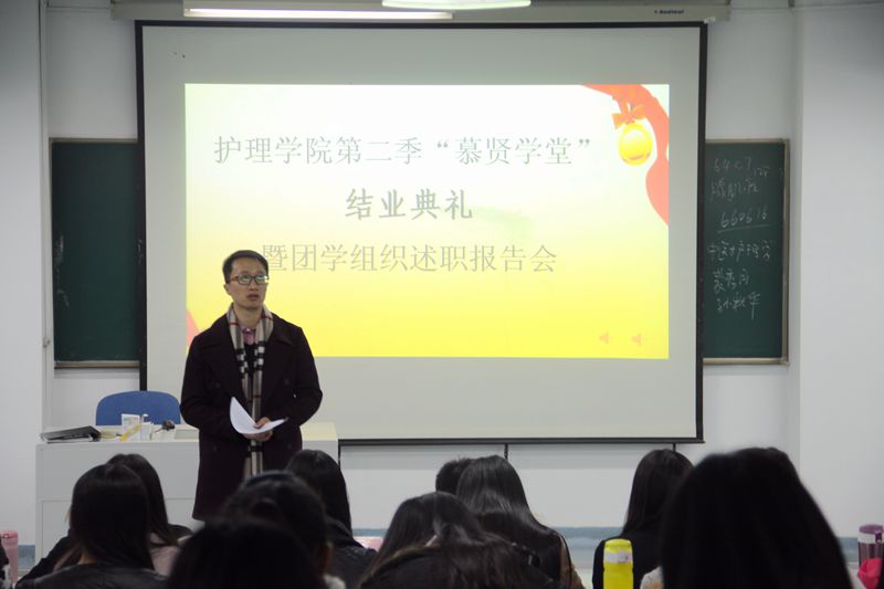 2015年12月16日,beat365英国官网网站第二季“慕贤学堂”结业典礼暨团学组织述职报告会在21号楼420教室顺利开展,这也意味着历时两个月的“慕贤学堂”团学干部培训活动圆满落幕。