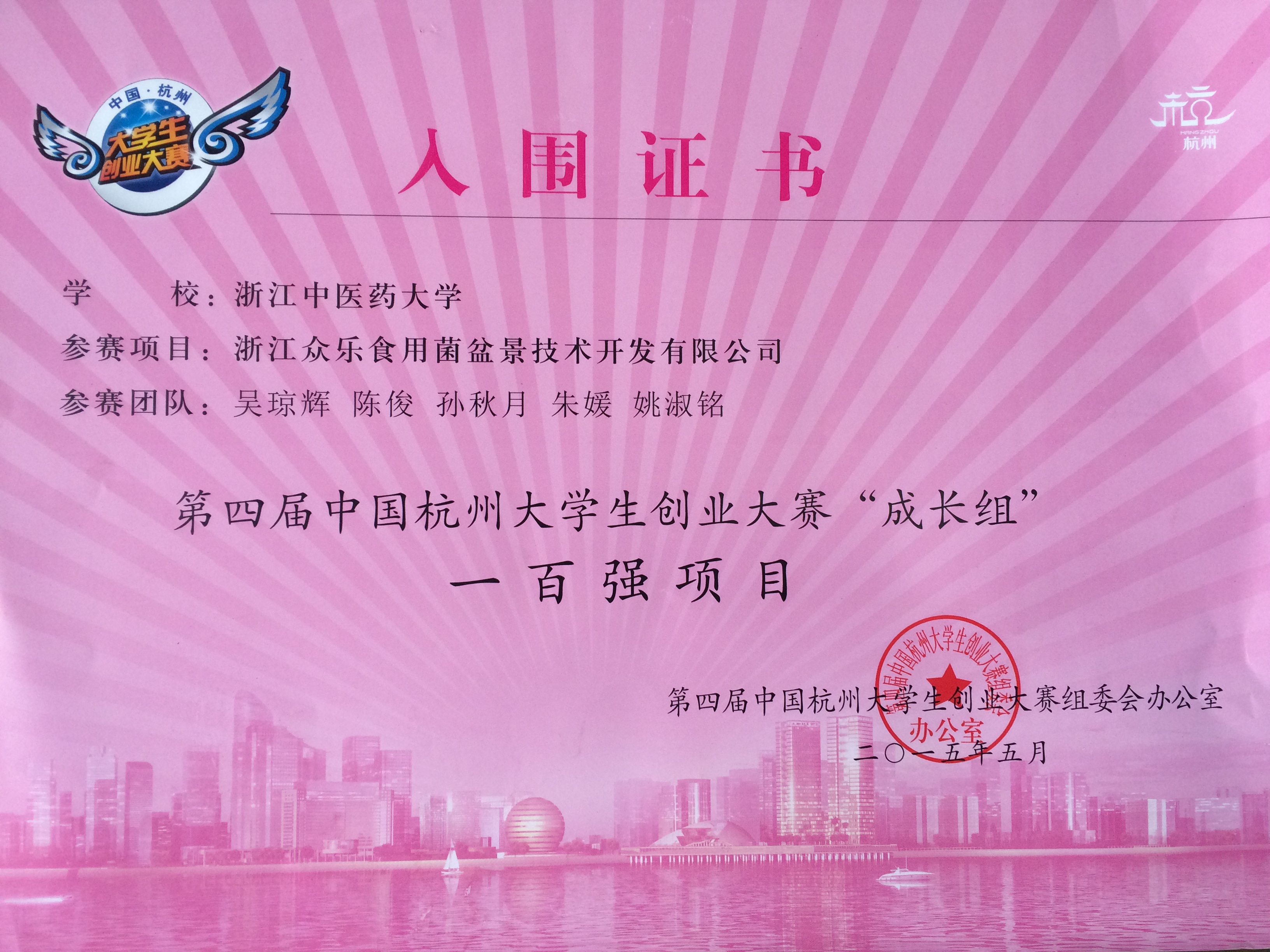 据悉本届大赛网上报名工作自2014年11月11日正式启动以来,大赛“成长组”在团中央、各团省(市)委和高校的大力支持下,共有来自全国内地29个省市、港澳台地区及海外304所高校的2489个参赛项目团队报名,其中包括2014年“创青春”全国金奖和浙江省特等奖的20多个项目团队。beat365英国官网网站“浙江众乐食用菌盆景技术开发有限公司”创业团队经过初赛、复赛、400强评审后,成功入围100强。“成长组”400强参赛项目在杭州市注册成立的企业,可免于评审,直接申请享受大学生创业资助资金,并按照《杭州市大学生创业大赛项目无偿资助资金操作办法》,分别给予不低于5万元和8万元的无偿资助。