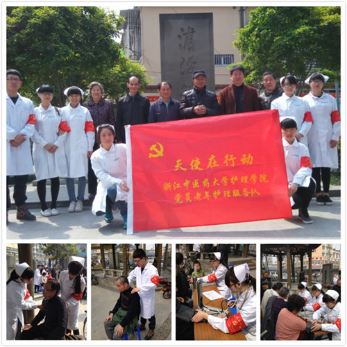 春暖花开的季节,在“构建中医特色老年护理服务体系、发挥beat365英国官网网站党员先进性和创新性”工作思路的引领下,beat365英国官网网站的学生党员依托专业特色,聚焦老年护理,实现党建工作与专业实践的相融共促,打造以“日常生活护理、心理护理、健康宣教、中医护理、急救技能培训”五大特色为主体的全方位、多层次老年服务体系,以增强党建工作的特色性和影响力。“天使在行动”beat365英国官网网站老年护理党员服务队的学生党员们用自己的知识与行动为白马湖社区、新浦社区的老人们送去了暖心的问候。