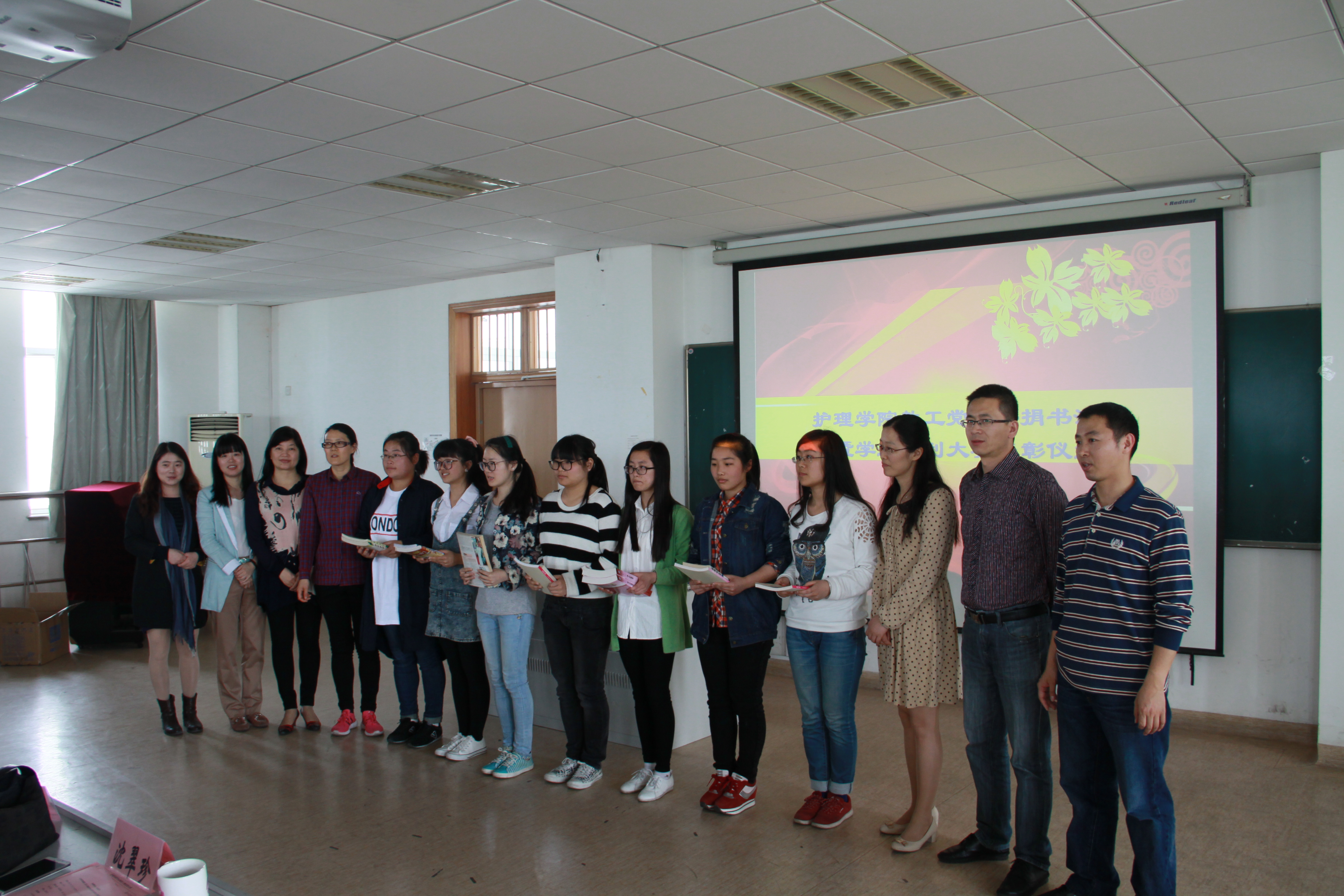 学院教工党支部书记裘秀月带领教师党员向冬青社代表捐赠书籍,捐赠的书籍中有同学们急需的教材学习资料,有影响过老师们的人物传记,更有老师在早年学习中过程中的实习笔记,冬青社的刘佳美同学说,书不一定改变生命的长度,但一定能增加生命的厚度,我们不能决定生命的长度,读书一定能让我们变得更宽容和温和。