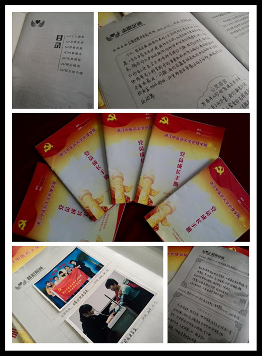 《手册》以“成长起步——成长历程——成长反思”为主线,包含了“个人信息”、“志愿足迹”、“开卷有益”、“时事看点”、“成果视窗”、“精彩瞬间”、“成长放大镜”等7个板块,要求学生党员讲学习、强素质、服务人民做贡献,真正将提高学生党员政治理论素质、表率先锋素质、开拓创新素质等落实到成长的每一个环节。党支部书记孙老师说,“在《手册》的设计、编制过程中,特设了‘开卷有益’、‘时事看点’等板块,提倡每位党员应树立终身学习的理念,通过每次朴实而深刻的学习来锤炼自身思想品德。”学生党员毛文琪同学说,“学生党员要具备全心全意为人民服务的奉献精神,为人民服务是具有较强的实践性的。《手册》记录了我们服务社会和群众有心有意、情到手到的点点滴滴,每一个瞬间都被定格记录了下来。” 学生党员沈欣夷说,“《手册》中的‘成长放大镜’这个板块特别有意义,其让我们认识到自己在学习生活中的不足之处,加以改进提高。”