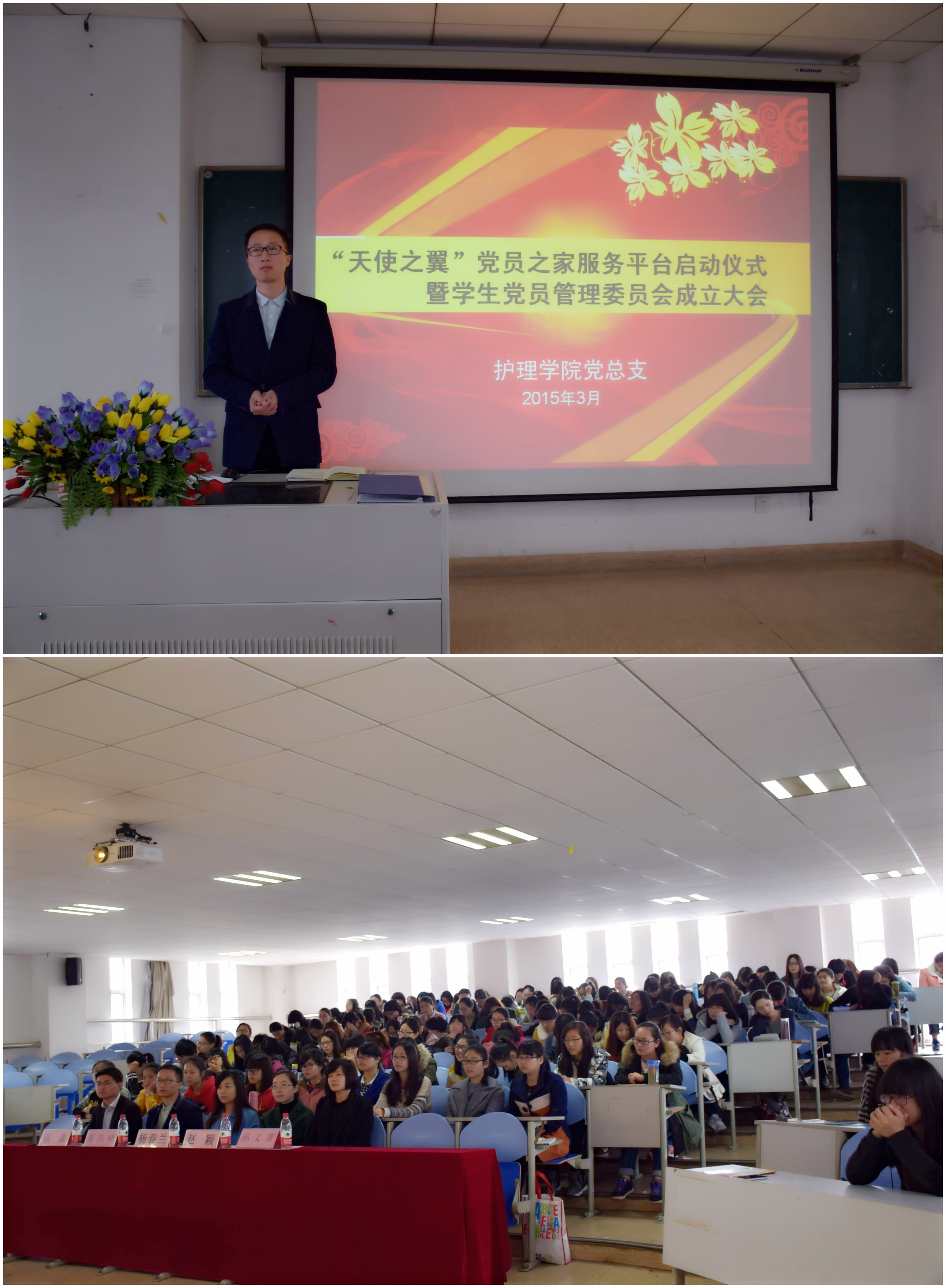 为了强化学院基层服务型党组织建设,贯彻落实党要管党,从严治党的方针,增强基层党组织的创造力、凝聚力、战斗力,特此学院党总支启动“天使之翼”党员之家服务平台、成立“天使之翼”学生党员管理委员会。会上,学院党总支副书记董凯峰介绍了“天使之翼”党员之家的总体情况、服务平台的预约流程、服务平台的预约安排及学生党员管理委员会的机构设置,并对学生党员及入党积极分子提出了希望和要求:一是要管好、用好“党员之家”,使其成为党员开展活动的阵地、学习党的知识和理论的园地、基层党务工作的载体和抓手,更好地发挥其应有的作用。二是在活动的内容和形式上要多样化,使其能吸引更多的党员和入党积极分子到“党员之家”来开展一系列的活动,成为党员、入党积极分子的精神家园。三是使“党员之家”成为党建和思想政治工作的阵地,发挥辐射作用,逐步形成教工党员、研究生党员、本科生党员帮扶体系,发挥党员先锋模范作用,增强党支部的凝聚力和战斗力。会上,“天使之翼”学生党员管理委员会第一任秘书长吴悦同志作了代表发言,会后杜磊组织召开了第一届学生党员管理委会全体会议。