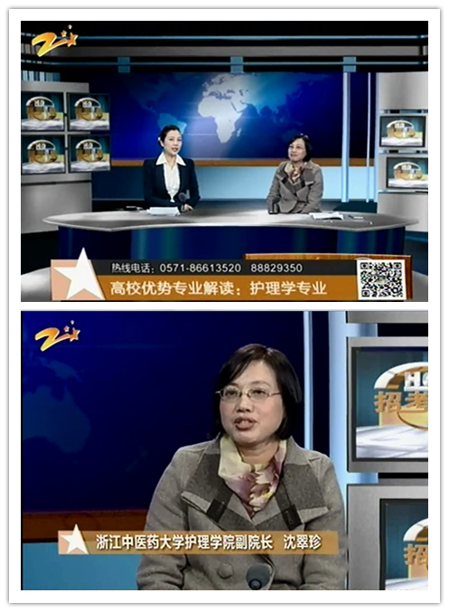 近日,beat365英国官网网站副院长沈翠珍应邀做客浙江教育科技频道“招考热线”节目,就我校护理学专业的招生、就业、教学等问题进行了答疑解惑,进一步展示了我校护理学专业的学科发展和就业优势。