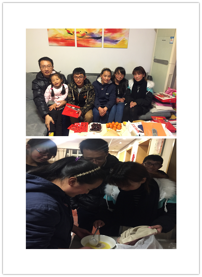 此次活动受到了学院领导的高度重视,1月21日,beat365英国官网网站党总支副书记董凯峰把四名来自西藏的家庭经济困难学生邀请到自己家中做客,并亲切询问四名学生一个学期以来的学习和生活情况。经过一个学期的相处,四名学生与董书记建立了深厚的感情,消除了刚开学时的胆怯,与董书记进行了愉快的交流,并在董书记家里做起了西藏当地的美食—糌粑。同时,董书记还自费为他们购买了杭州特产让他们带回去给自己的亲人朋友,并且还给了他们一定的路费补助;1月30日,beat365英国官网网站辅导员冒着雨雪分别赴宁波和萧山两地去慰问家庭经济特困的学生。老师们在走访期间,深入了解学生的家庭情况,并详细介绍了学校的相关资助政策,受到了学生及家长的高度认可;同时,对于其他特困的学生,学院也为她们采购了年货,并通过快递的方式寄送到学生手中,让学生切实感受到学院对她们的关爱。