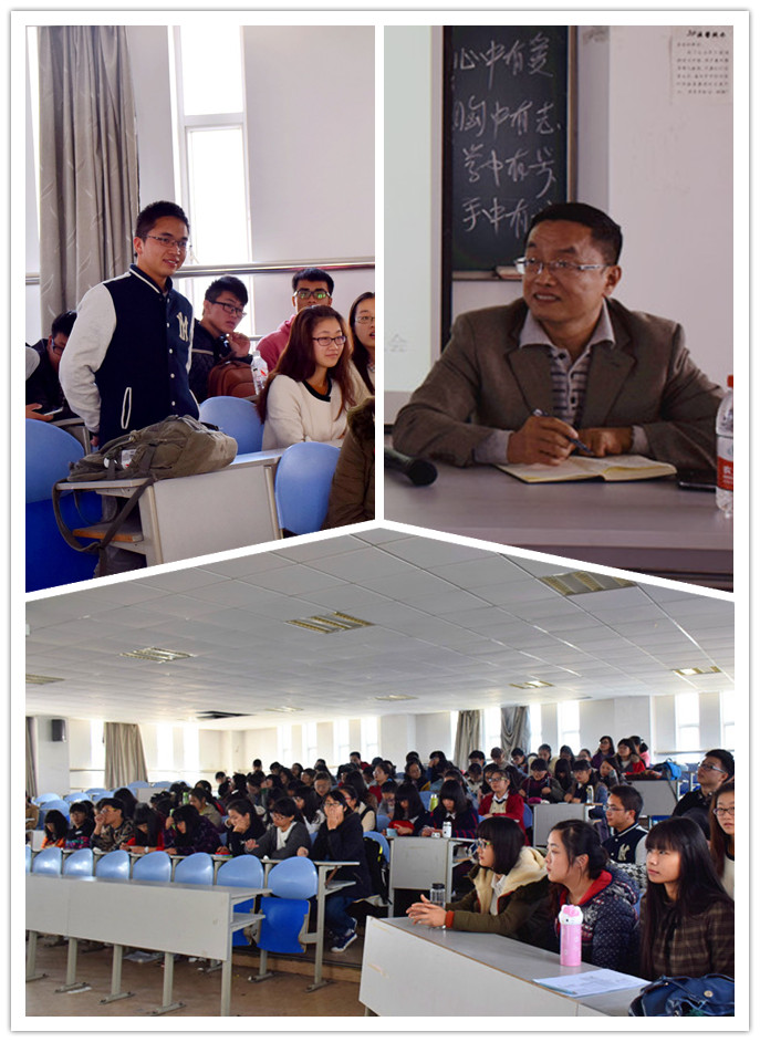 会上,刘书记激情昂扬、诙谐幽默的讲话赢得了在场同学的阵阵掌声。他指出,大学生应该树立“学习知识、增长才干、提高能力、服务社会”的阶段目标,努力成为拥有“爱心、耐心、同情心、信心”的四心青年。此后,针对2014级新生提出的学业困惑,沈翠珍老师就如何确立大学学习目标、提高学习积极性以及如何找到合适的学习方法等方面进行了解答,并向有考研和转专业意向的同学作了相关解说。最后,在学生自由提问环节,同学们畅所欲言,纷纷提出了在校2个月生活中产生的疑惑,包括食堂伙食、寝室情况、自主学习等方面,学院团委副书记兼2014级新生辅导员汤亚玲逐一做了解释与说明,让在座的同学知晓学院学生工作的进展与动态,希望大家能对学院学生工作多提宝贵的意见与建议,同时希望大家能以此为契机,以抽丝剥茧的精神,选准自己的人生方向,持之以恒,咬定青山不放松。