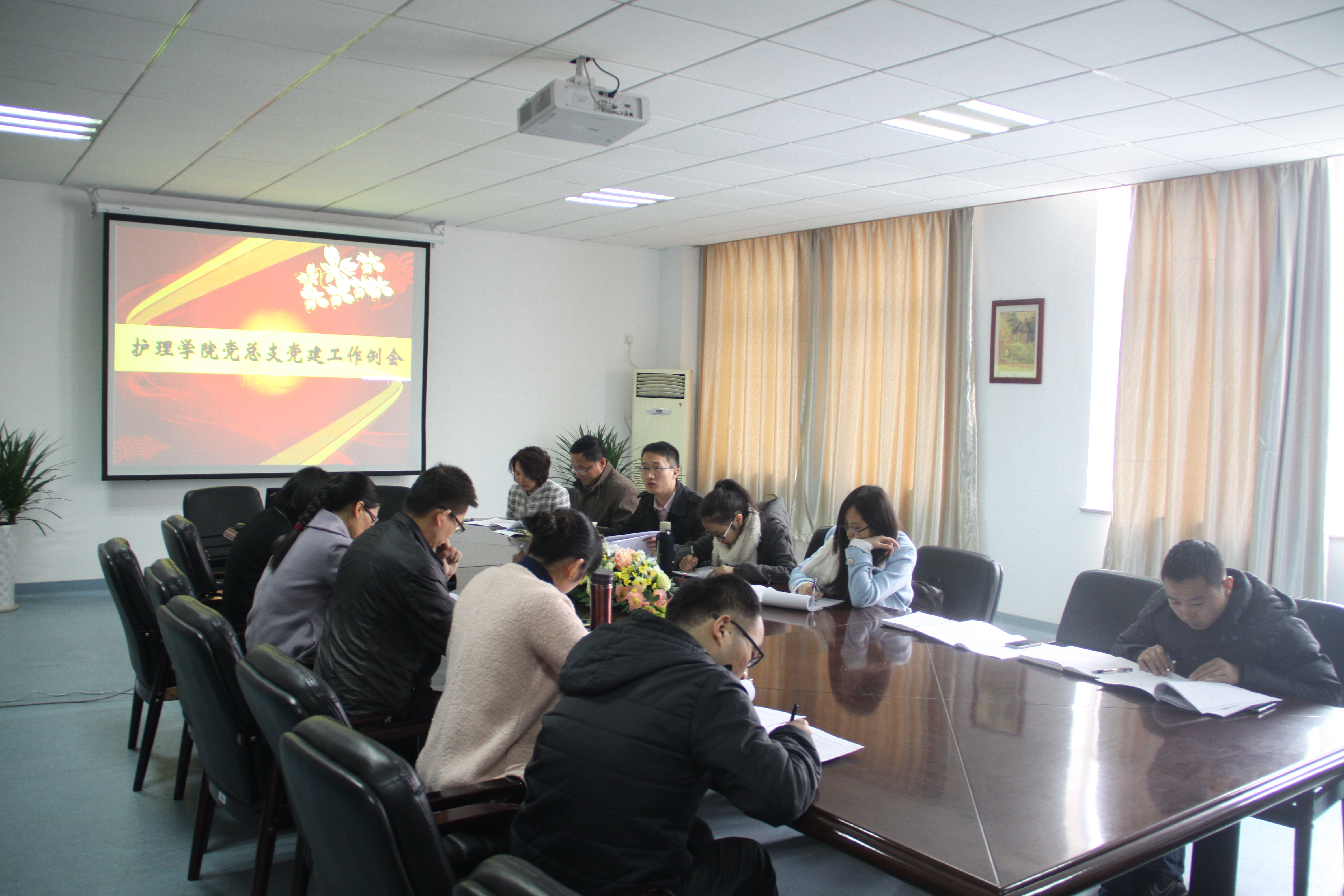 董书记就学院党总支近期各项党建工作推进情况进行了通报,并对下一阶段党建工作进行了部署,尤其对发展党员及各个层次的教育培训情况进行了重点布置。董书记提出在大学生中发展党员务必保证入党程序的规范性,同时要确保党性的修养与提高。与会人员学习讨论了学院《团员荐优实施办法(试行)》、《学生入党积极分子培养考察办法(试行)》,对两种办法进行了充分讨论,并提出了建设性意见。接着,董书记介绍了beat365英国官网网站党建品牌项目活动计划“天使砺炼工程”,大家就如何将党建带动团建、将党建品牌项目与护理专业特色相结合发表了自己的看法。最后,beat365英国官网网站党总支副书记(主持工作)刘师少对学院整体党建工作进行了总结,他高度评价了各党支部在教育培训体系中所做的努力,并对全体党总支委员、各党支部书记及支委提出了五点要求:一、继续发挥党员的战斗堡垒作用,做好学生思想政治上的引路人;二、继续发挥党员的先锋模范作用;三、发挥辐射作用,传播正能量;四、发挥引领作用;五、发挥示范作用。刘书记希望把beat365英国官网网站最终打造成专门培养具有中西医结合背景、高素质护理人才的黄埔军校。