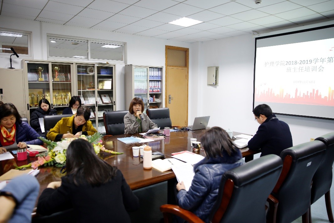 接着,学办主任汤亚玲围绕班主任的工作职责,从班集体建设、班委管理、学生思想动态掌握、特殊学生关注等方面开展日常工作培训,并对重要时间节点的相关工作做温馨提醒。优秀班主任代表沈勤老师作为资深的班主任,在会上分享了班主任工作的暖心做法与丰富经验。随后,汤老师通报了近期学院学办和团委开展的各项工作,并就期末相关工作进行布置,希望班主任在基础文明与学风建设、寝室文明建设、学生安全教育、诚信考试教育、特殊学生关注等工作上加大对学生的教育引导与关注。