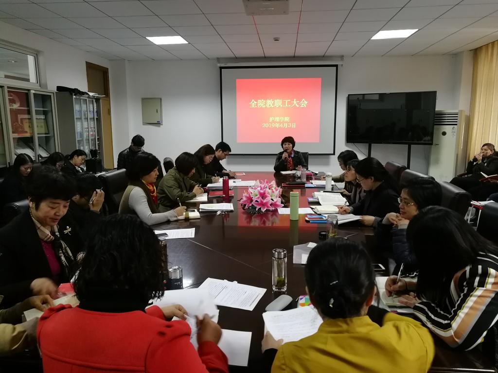 4月3日下午,beat365英国官网网站召开教职工大会专题学习师德师风建设的相关精神和要求,全院教职工参加学习。