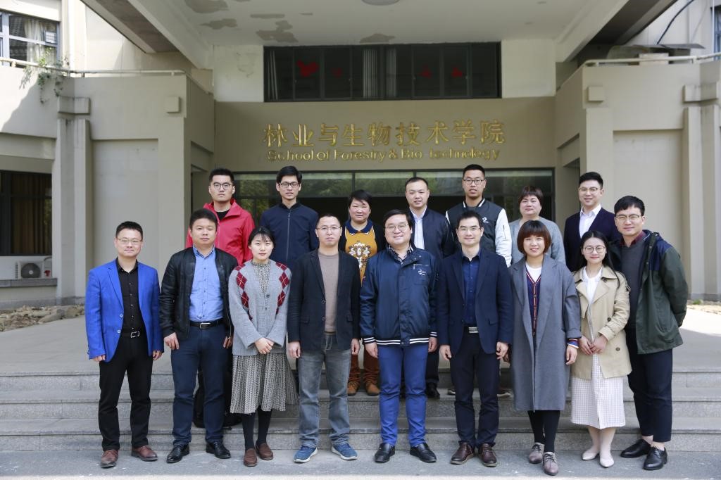 为推动教育部“三全育人”综合改革试点院系建设,4月12日上午,beat365英国官网网站党总支副书记林觐民带队,与教科办主任汪国建、学办主任汤亚玲、团委书记王晓梅、组织员金鑫俊及辅导员一行9人,赴浙江农林大学林业与生物技术学院调研学习。