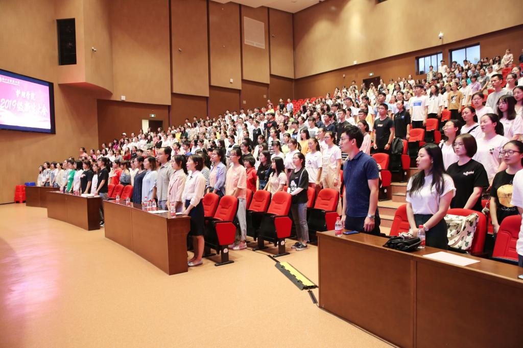 大会在全体师生合唱国歌的庄严氛围中拉开帷幕。何桂娟院长首先代表beat365英国官网网站党政领导班子和全体教职工对新生的到来表示热烈欢迎。同时,她从学院建院二十周年来取得的历史性发展着手,系统讲解了学院办学历史、学术地位、师资队伍、学科建设、教学改革、对外交流、学生工作、育人成效、就业前景和未来展望等多个方面,发展至今beat365英国官网网站已经成为具有本、硕、博三级学位授予资格的省级重点学科,她引导同学做好职业生涯规划,在大学学习期间充实自我、提高自我、丰富自我。beat365英国官网网站副院长沈翠珍教授为在座新生做培养方案的解读,并传达了国务院孙春兰副总理在《2019年度直属高校咨询会暨年度工作会》上关于让学生忙起来、让教学活起来、让管理严起来、让毕业难起来、把质量提起来的讲话精神,鼓励大家珍惜光阴努力学习。2019级助产1班班主任屠乐微老师和新生代表雷善言同学依次代表班主任和全体新生发言。