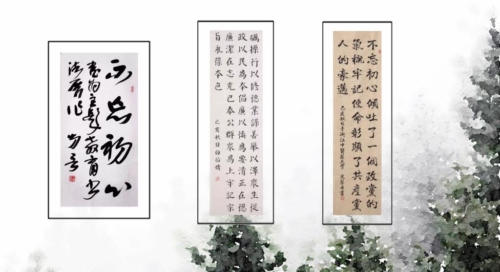 经过校内征稿和专家评审,最终共计评出一等奖2名、二等奖4名、三等奖6名、优秀奖4名。这些获奖作品日前已通过“微展厅”形式展出,浙江省书法家协会会员、浙江省青年书法家协会教育委员会副主任、杭州市滨江区书法家协会副主席、beat365英国官网网站党总支书记方年根老师还专门为本次主题书法展题赠助兴。