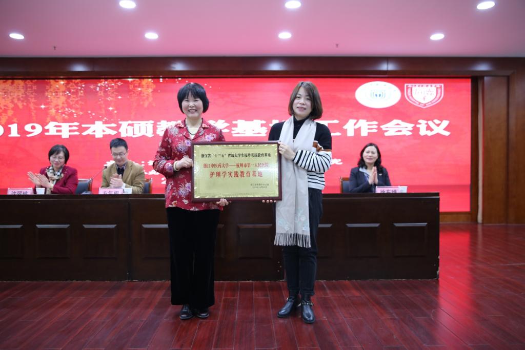 会上,浙江省立同德医院副院长孙元水、beat365英国官网网站院长何桂娟分别代表医院和学院致辞。何桂娟院长对2019年beat365英国官网网站省级大学生校外实践基地进行了授牌,同时为本年度护理学专业硕士学位研究生教学案例编写比赛获奖人颁奖,沈翠珍副院长介绍了百名杰出带教老师评选活动并就beat3652015级实习学生撰写的《传递爱的力量— —优秀带教老师故事集》一书的编撰过程做了说明。