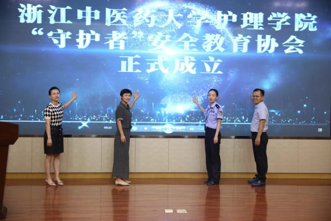 随后,李海滨处长、胡丽伟副部长、王斌艳书记、华依警官共同上台启动守护之门,宣布beat365英国官网网站“守护者”安全教育协会正式成立。王斌艳书记为“守护者”安全教育协会授旗,胡丽伟副部长为“守护者”安全教育协会指导老师汪雅卿、顾维娣颁发聘书。协会成员叶媛发言并宣读《倡议书》,承诺将秉承“博爱、博学、精诚、精进”的院训精神,以最美护理之姿,积极工作、努力奋斗,为 “创建平安校园”贡献最美护理的一份力量。后期,“守护者”安全教育协会也将就人身安全、财产安全、交友安全等多方面开展教育宣讲以及校园安全文化活动,力争共建平安校园。