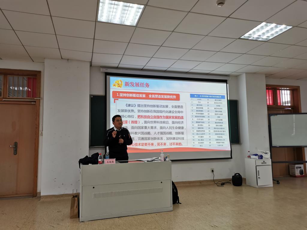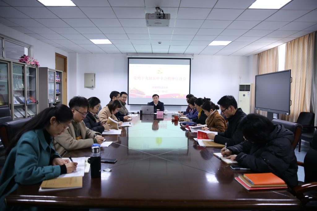 12月9日下午,beat365英国官网网站党总支分别在21号楼404会议室和518教室组织开展了党的十九届五中全会精神学习活动。根据学校党委的统一部署,罗伟明副校长给学院理论学习中心组成员进行了宣讲,马克思主义学院王延隆副教授给除理论学习中心组以外的学院教师和学生骨干代表进行了宣讲。本次专题学习活动由学院党总支书记方年根主持。