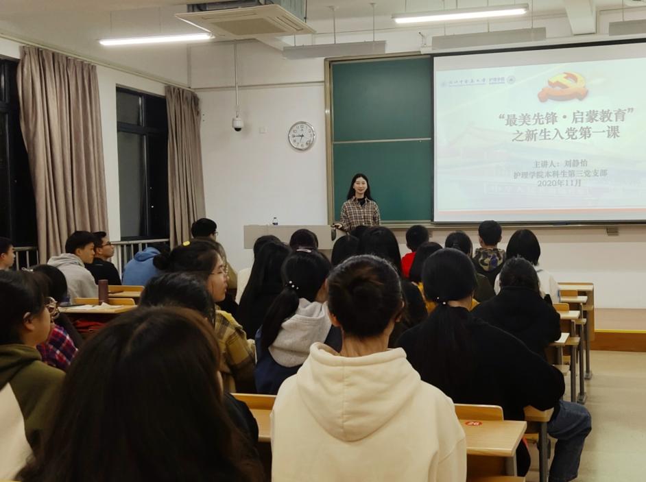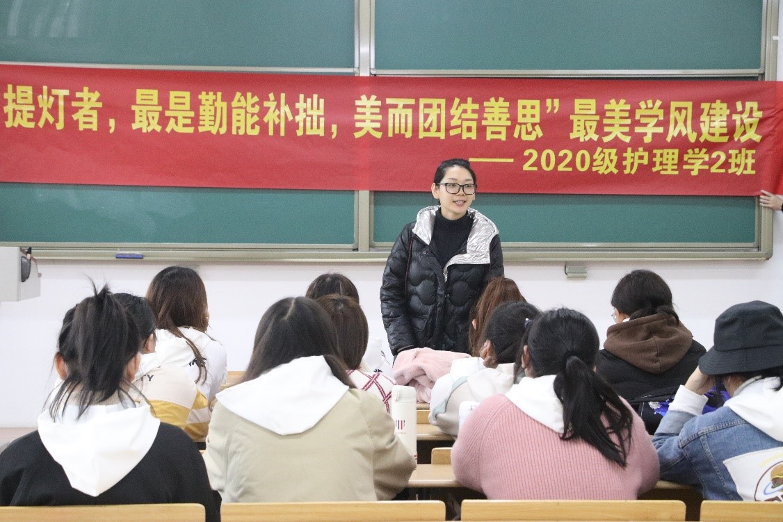 图1:李青青老师给2020级护理学2班开“最美学风建设”主题班会