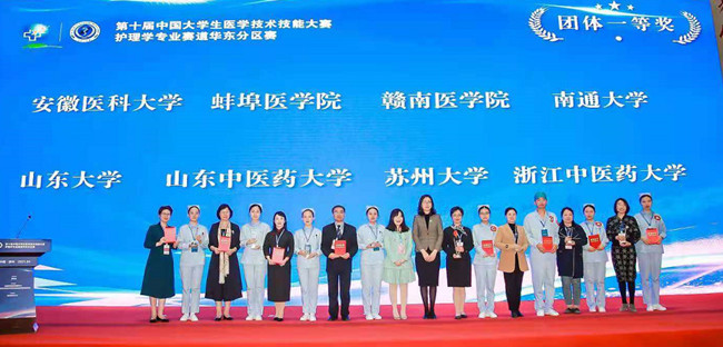 中国大学生医学技术技能大赛是医学高等院校的顶级赛事,本届护理学赛道以“尚德精术培育卓越人才,中西并重共筑健康中国”为主题,受到社会各界的广泛关注。我校护理学专业是国家级一流本科专业建设点,人才培养一直以来受到社会的高度认可,通过竞赛有助于提升学生综合思维能力和临床技能水平,进一步推动医学教育改革,提升师资队伍教学质量,从而更好地促进高质量的护理学人才培养。
