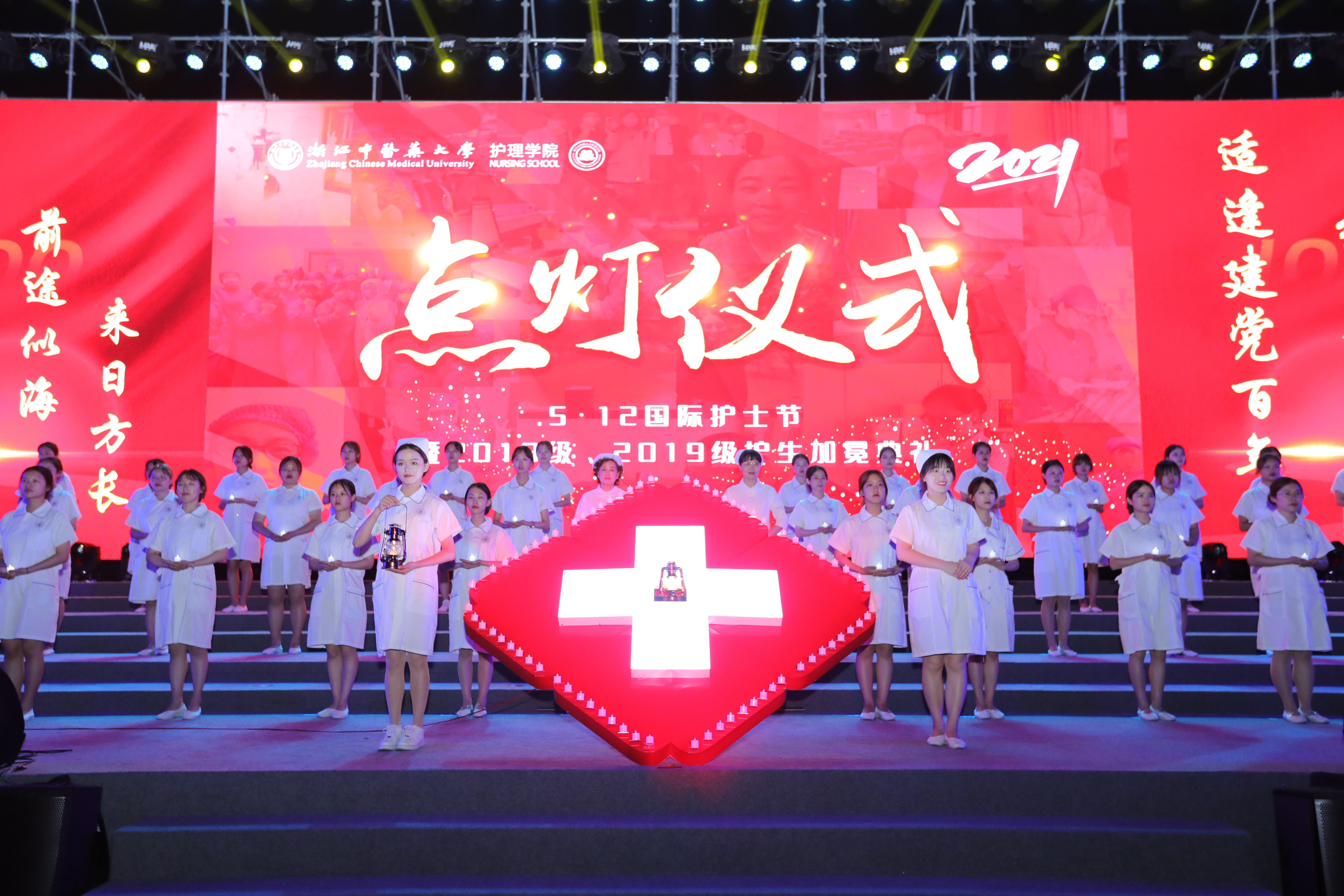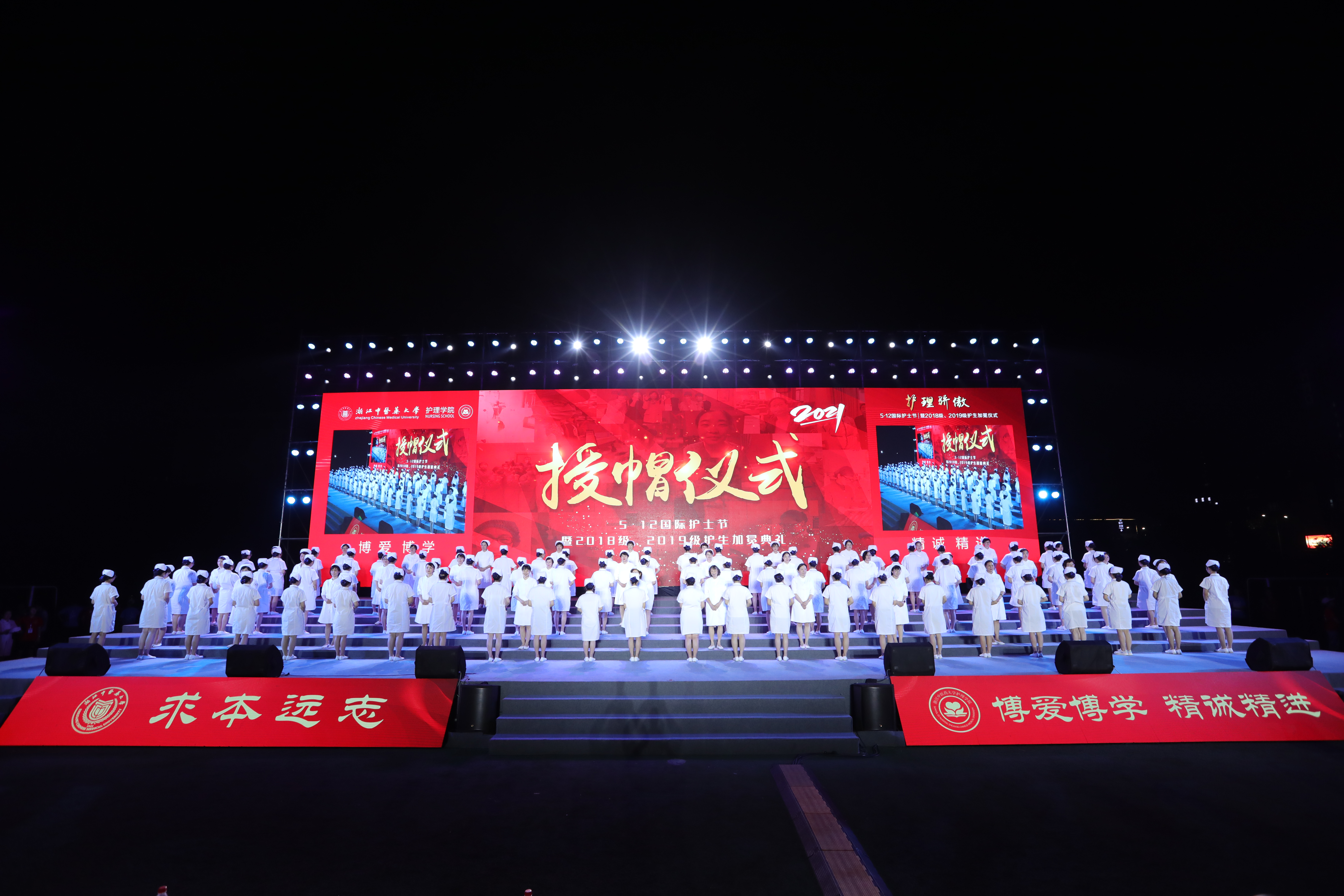 历经了疫情的阴霾,在这个春回大地、欣欣向荣的五月,在建党100周年之际,我们迎来了第30个国际助产士日、第110个国际护士节。5月9号晚19:30,由beat365英国官网网站举办的5•12国际护士节暨2018级、2019级护生加冕仪式在滨文校区田径场隆重举行。出席本次仪式的有学校党委书记黄文秀、原校党委书记护理学科带头人孙秋华、党委副书记张光霁、副校长吴承亮、温成平、纪委书记王轶、副校长罗伟明、阮叶萍、党委委员黄爱军、黄建波、马重阳等学校领导,在杭部分省市级医院护理部主任及校友,全院教职工及全体2018级、2019级护生参加。