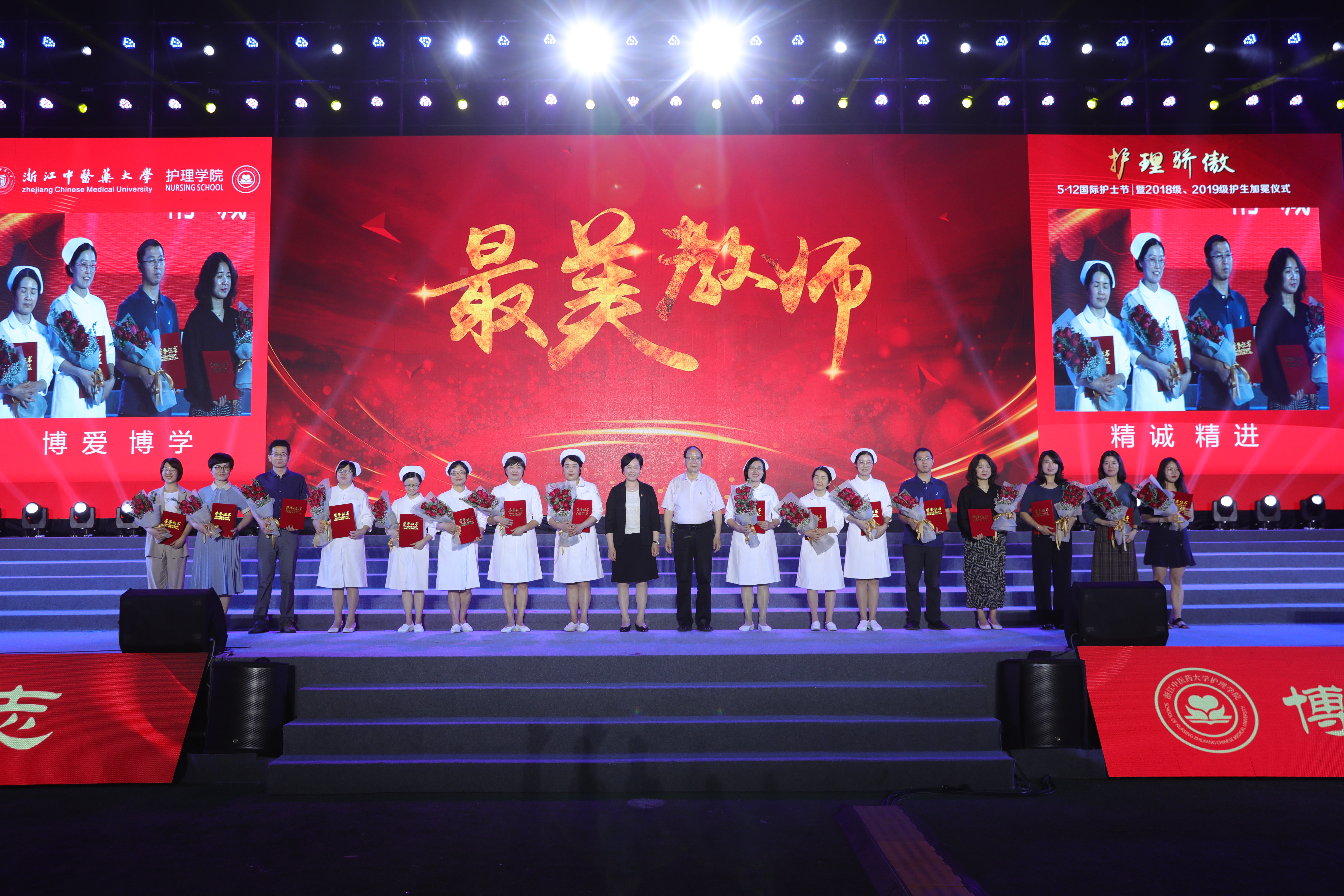 随后,学校党委书记黄文秀、原党委书记现护理学科带头人孙秋华、副校长吴承亮、温成平、纪委书记王轶、副校长罗伟明、阮叶萍分别为beat365英国官网网站“最美学生”“最美集体”“最美校友”“最美老师”荣誉获得者颁奖,展现最美师生风采。