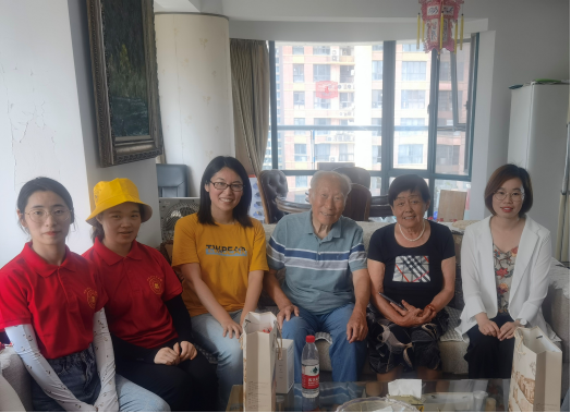 结对的三户老人都是党员家庭,第一户是金爷爷和刘奶奶,60年前,他们大学毕业后被分配到杭州,如今已是八旬老人;第二户是光荣的退伍老兵和军属,爷爷喜爱书法,多才多艺;第三户奶奶是丧偶独居老人,都因为子女工作忙碌,不能经常探访,显得较为孤独。尽管他们的生活条件得到了大幅改善,但其精神需求更高。尤其是对于独居老人而言,其较难形成有效的社交关系,孤独感更为明显。在与老人交谈的过程中,我们发现这些耄耋老人对中国共产党有着深厚的情感,他们见证了中国从站起来、富起来到强起来的过程。从他们的眼里我们看到了老一辈共产党人对当今美好生活的无限感激,和对青年党员寄予的殷切厚望。通过这样一节生动的党课,也让党员同学们更加坚定了服务群众、贡献社会的初心和使命。