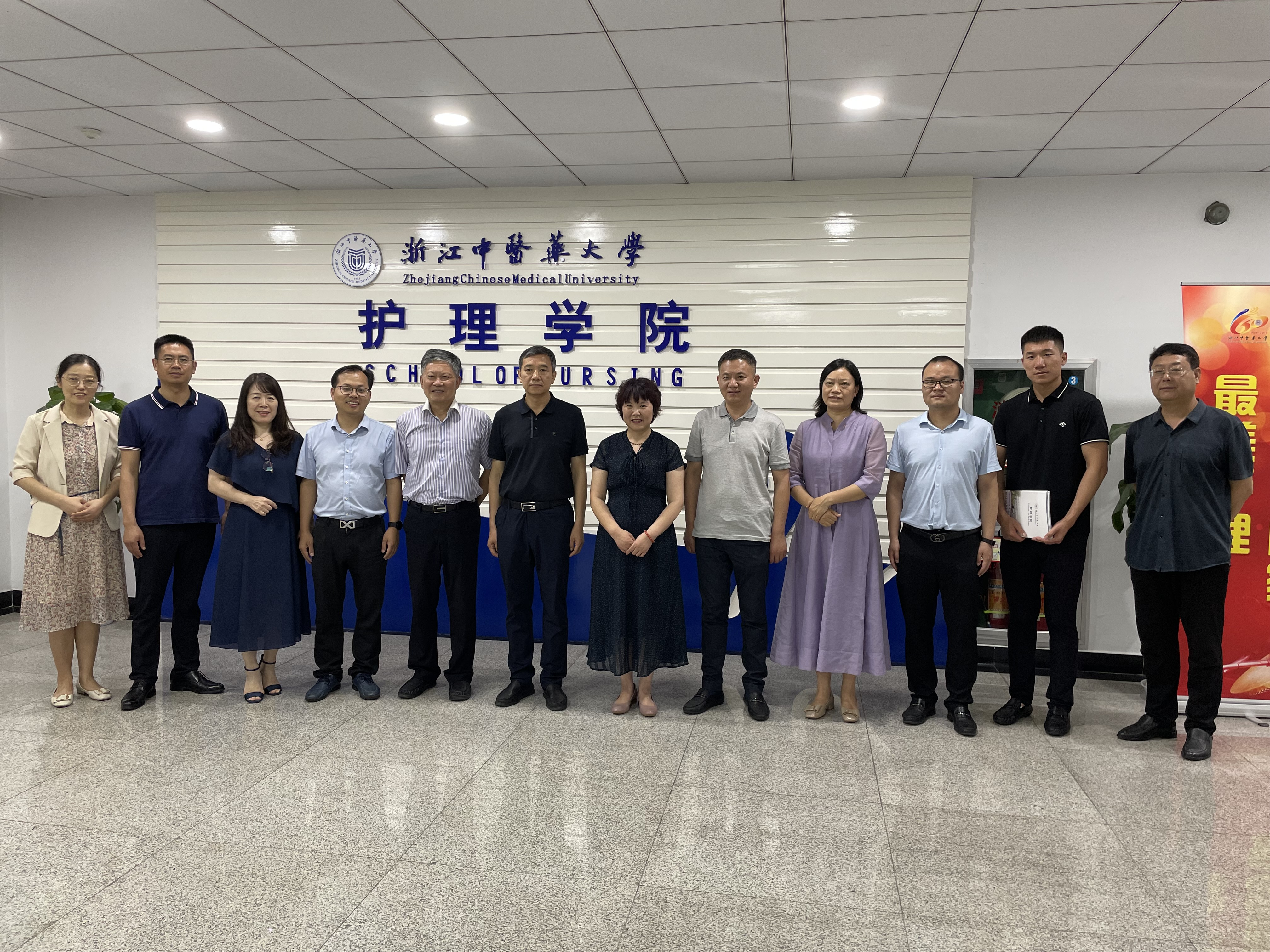 6月9日下午,浙江省老年服务业协会会长徐佳增、副会长周微、河南省驻马店市驿城区政协主席秦峰、政府副区长李文清、民政局局长刘东、颐康阳光养老中心董事长任有军、居家养老服务中心总经理王菁等一行10余人赴beat365英国官网网站调研学习,beat365英国官网网站院长何桂娟、党委书记李海滨、党政办主任李慧君、老年社区护理负责人杨莉莉、社会培训合作部主任沈丽佳等出席接待。