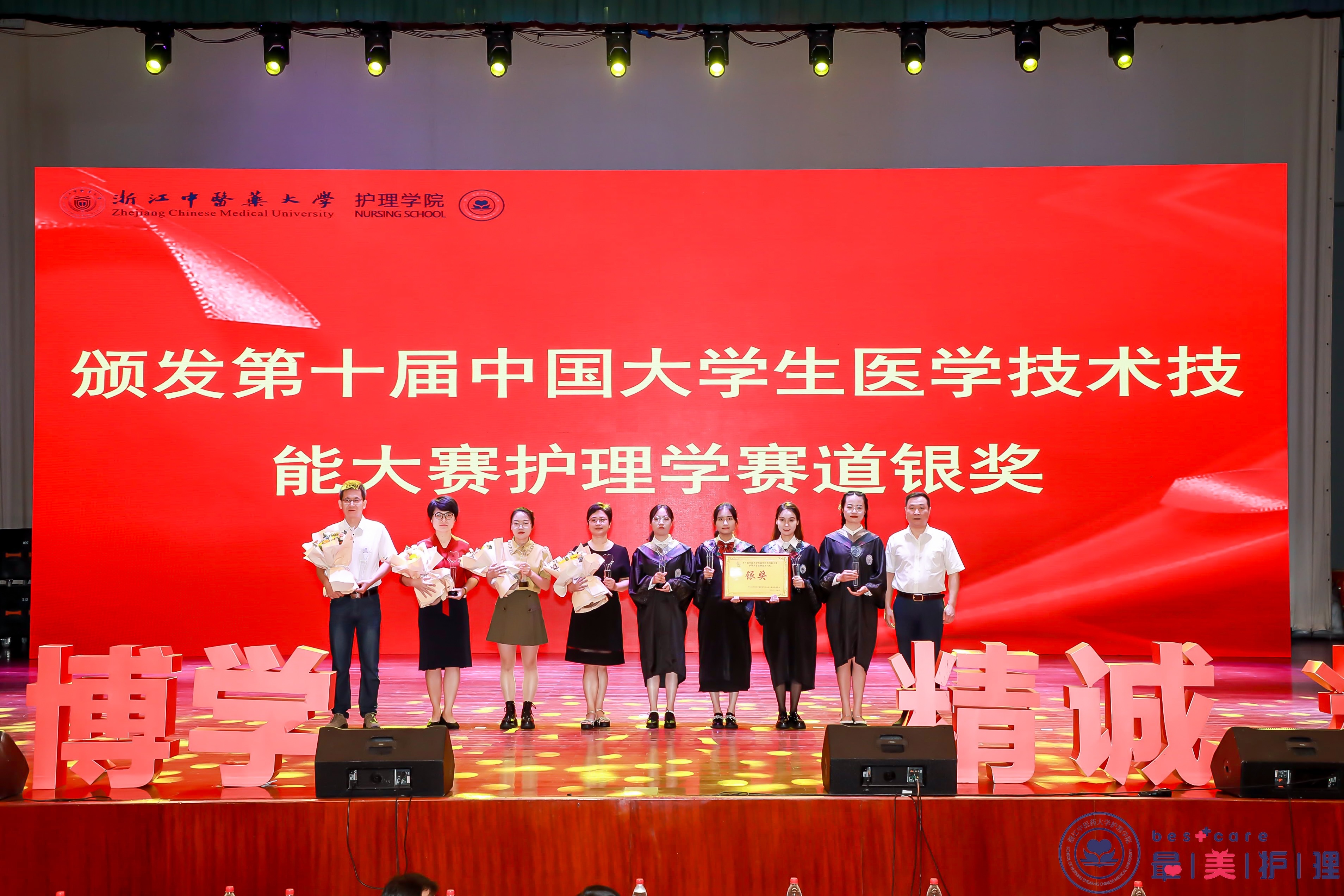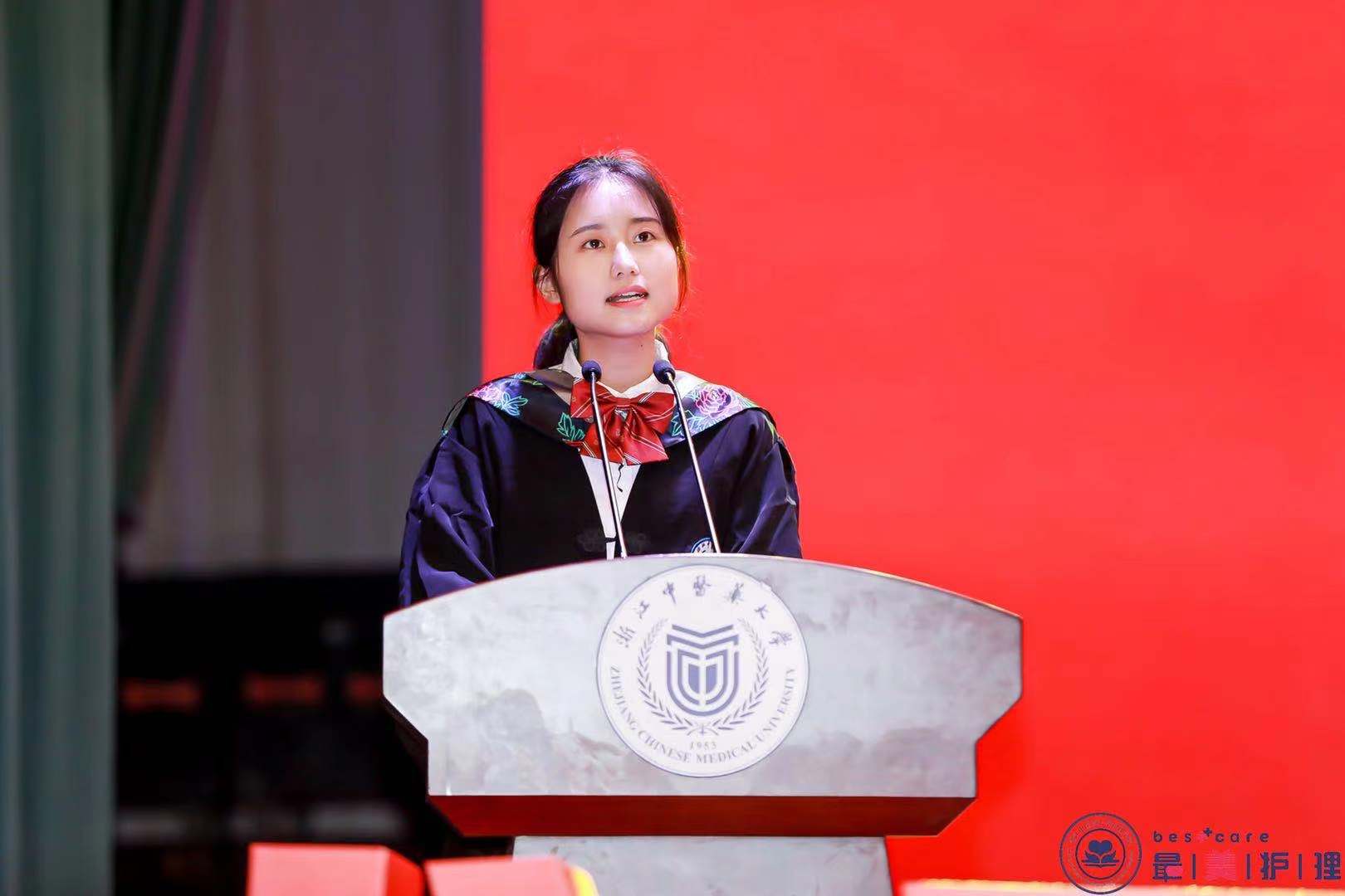 教师代表沈勤老师在发言中饱含深情地表达了对毕业生的叮嘱与期望,鼓励莘莘学子坚守梦想,持续学习,终生学习;坚定信念,勇于担当,当好呵护人类健康的守护神,写下自己的无悔人生。2021届研究生代表谢传艺同学、本科生代表朱倩寅同学与大家分享了在校期间的成长历程,表达了对母校的感激之情,表示要担负起时代重任,做最美护理人,成就新时代护理骄傲。紧接着颁发了校友联络员、校级优秀毕业生、省级优秀毕业生荣誉证书。最后,罗校长为获第十届中国大学生医学技术技能大赛护理学赛道银奖的学生和指导老师颁奖;孙书记为在见义勇为的武天一同学颁发“最美毕业生”证书。在表彰先进的同时,鼓励广大毕业生在未来工作中学习先进、争当先进。