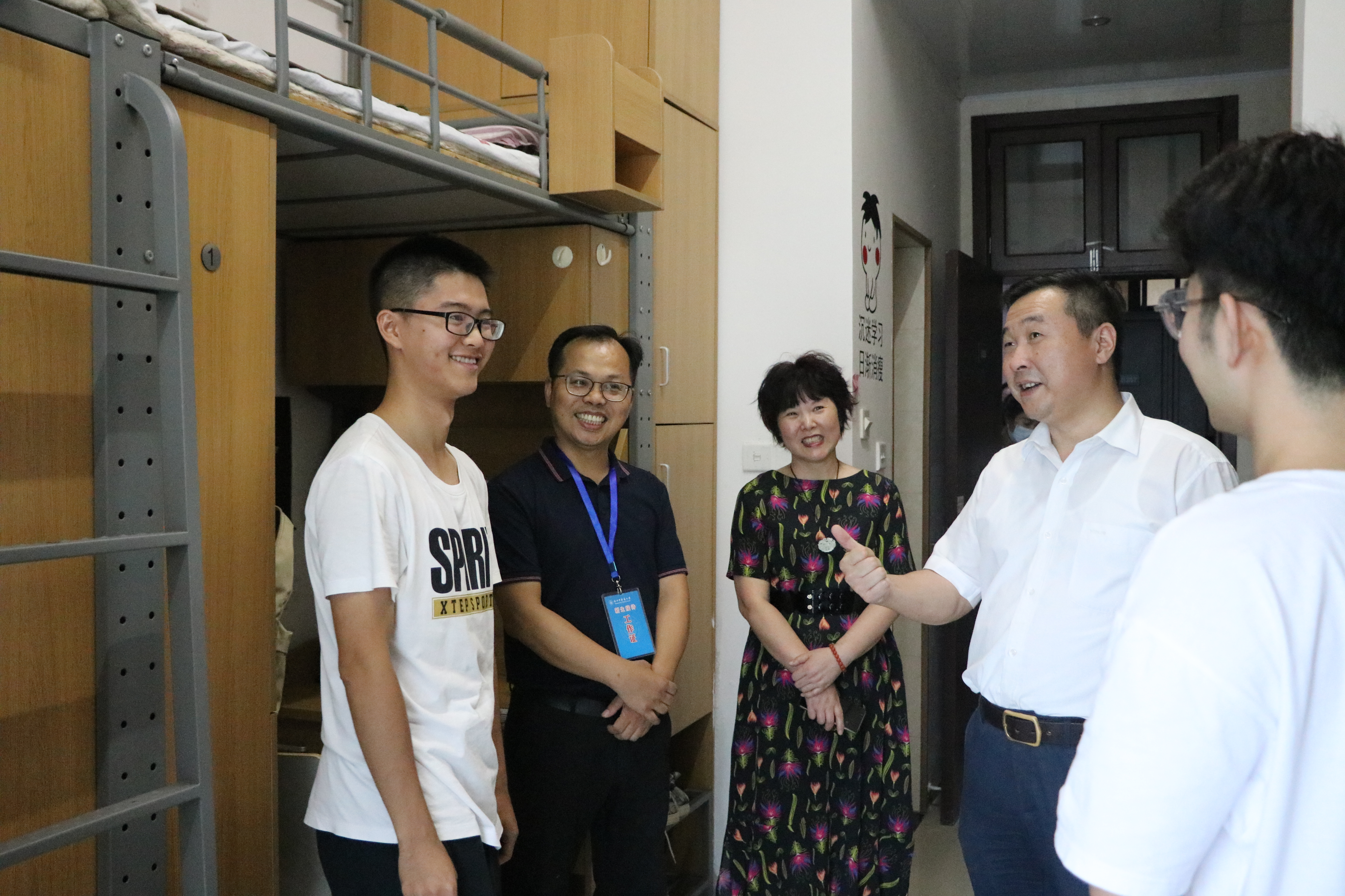 报到日下午,罗伟明副校长在学院院长何桂娟、党委书记李海滨等老师的陪同下来到新生寝室,与2021级护理学专业新生亲切交流,向他们表示热烈欢迎。罗校长亲切地询问同学们的家乡,关心来校路上的情况,在走访到西藏新生的寝室时,还收到了西藏学子献上的哈达,代表着最真心的祝福。罗校长还鼓励同学们要珍惜美好的大学时光,树立正确的价值观,做好大学规划,认真学习,不断提升与充实自己。并与大家合影留念,被访新生倍感温暖和振奋!
