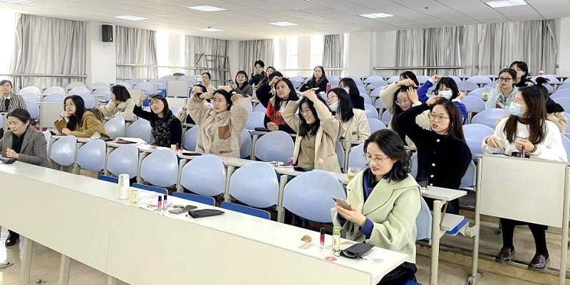 在讲座中,谢慧淼老师从头部经络疏通法、手部经络疏通法、脸部经络疏通法、背部经络疏通法、减肥带脉疏通法五个方面进行讲解,结合精油演示刮痧基本操作和按摩手法。“我要把谢老师的按摩手法录下来,分享给我的朋友”“之前对经络按摩了解的不是很全面,这次讲座让我受益匪浅!”在场的beat365英国官网网站女老师们纷纷说道。在讲座现场,谢老师还为学院老师进行刮痧、针灸、面部按摩,并对相关动作进行详细地分解讲解,让老师们收获满满。